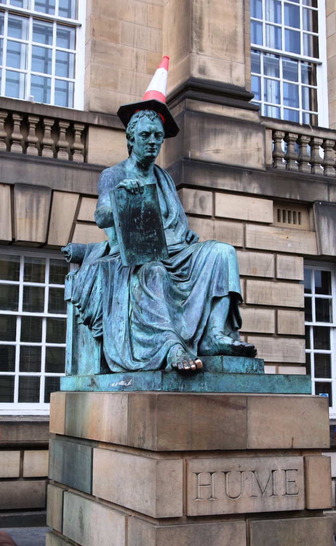 道路一侧有一座被当时英国政府称为恐怖分子的约翰·休姆像。他是格里·亚当斯的合作伙伴,是主张和平改革的斗士。一般雕塑像上,总是有鸟休息,就离不了一塌糊涂的鸟屎,这里是谁发明了帽子,好像解决了这个世界难题。