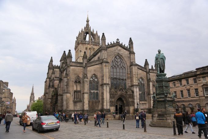 圣吉尔斯大教堂是一个苏格兰长老会礼拜场所,位于苏格兰爱丁堡老城皇家英里的中点,是爱丁堡的主教堂,也是苏格兰的国家教堂。教堂原建于1120年,后遭大火烧毁,于1385年重建。教堂的塔顶仿照苏格兰王冠设计,体现出它在苏格兰首屈一指的地位。该教堂的4根大柱子为12世纪所建成,新歌德式的天花板与饰壁上的雕刻极为精美华丽。