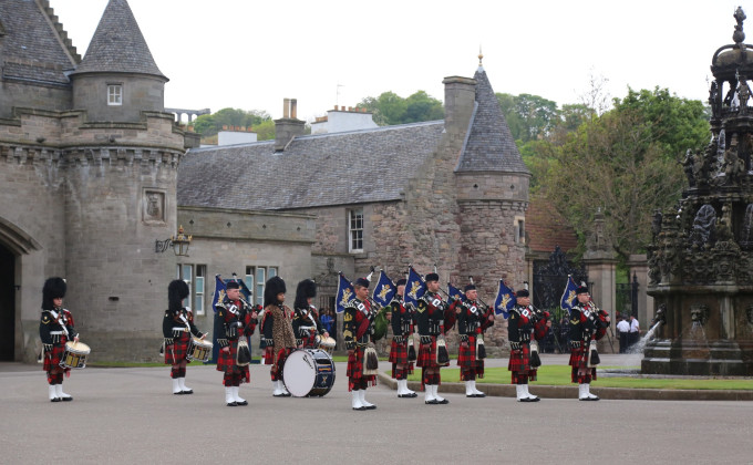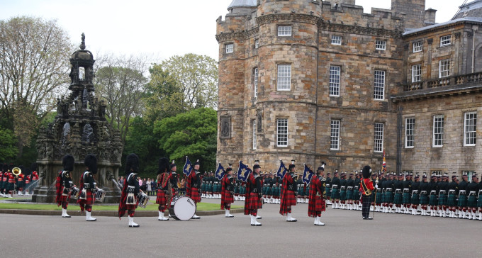 皇家一里的尽头就是荷里路德宫也叫圣十字架宫,原本是寺院的宾馆,后来经过修建成为国王的行宫,如今每年夏季,国王都要来此小住一周。我们到这里看到正在准备要举行什么活动。