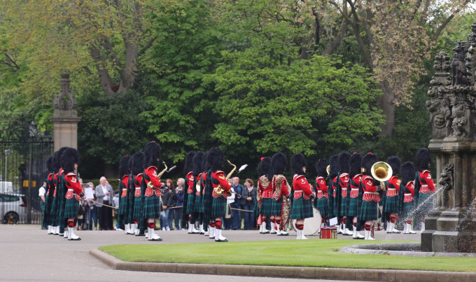 我们来到这里,看到行宫门口站满了人,好像将要举行什么活动。问了一下旁边的群众,他们告诉我,女皇的女儿将外出,有一个仪式。能够看到公主?真是千载难逢的机会,我们和其他感兴趣的朋友一起在这里默默等候。图片中间就是荷里路德宫,列队长官正在关照着什么。一些游客在旁边等候观看。我们也在这里等候