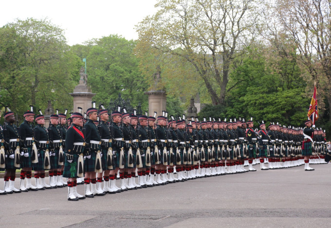 苏格兰民族服装的军乐队。