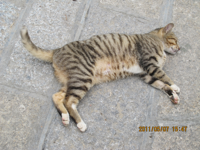 睡在大马路上的猫猫,对围观的路人完全忽略