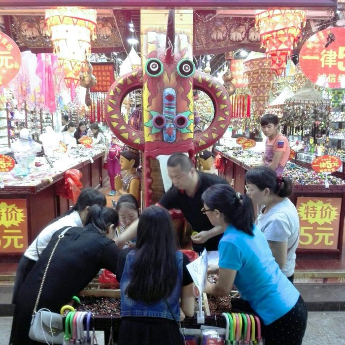 夜晚的西街,灯火辉煌,雨亦挡不住游人的脚步。相隔九年,再见西街,感觉更繁华了。餐厅、饭馆、酒吧一家挨一家,高、中、低档齐全,丰俭由人。还有很多特色小店,卖蜡染、卖衣服、首饰等,逛店,很惬意。
