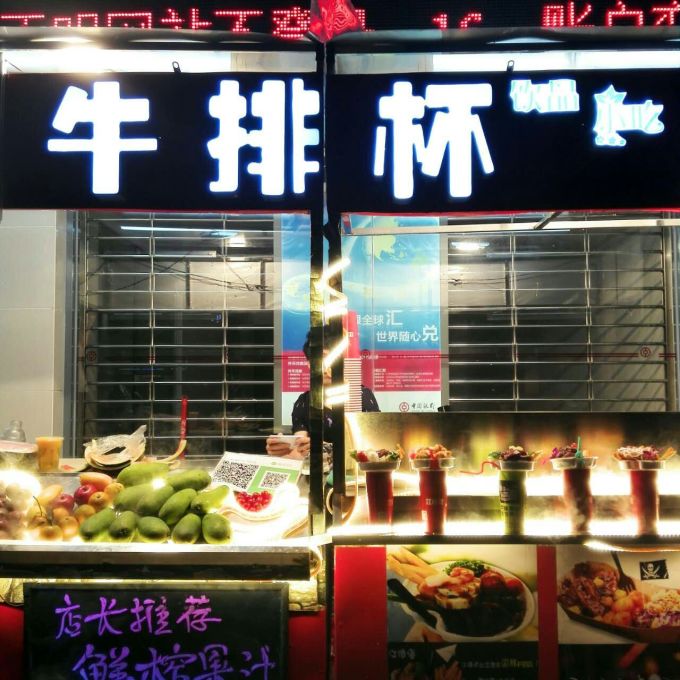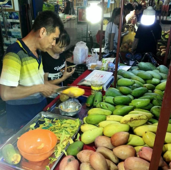 街头卖芒果的摊位特别忙,现打的果汁,超级好喝。