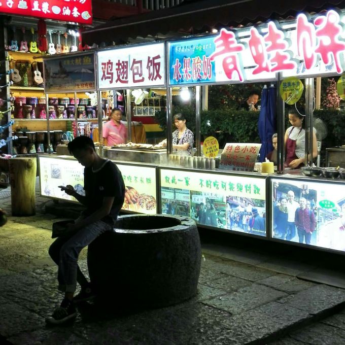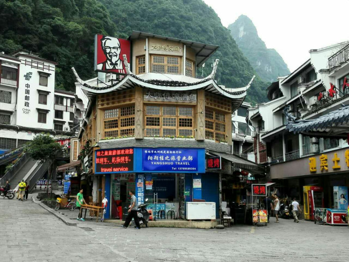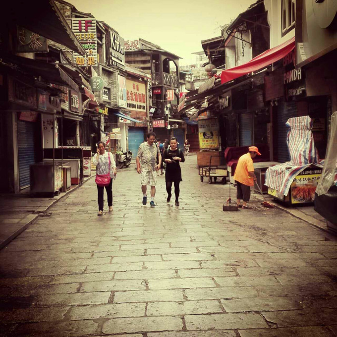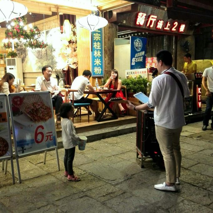 出站。雨大。打车去阳朔西街。司机说:想回家吃饭了,不想去。好说歹说,总算是去了。到西街,车资230元。呵呵,满满的套路哦。