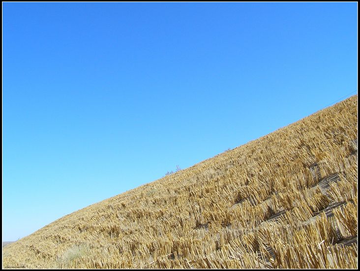 沟中有一个就几户人家的村庄,土墙土屋木栏栅便成就了一个世界,淳朴悠远的气质轻扣心底,于是,放马南 山,采菊东篱,偎郎怀中,孩缠膝下的念想被挑拨了出来,无限升腾。其实,也就是念想而已,当你看到独自抚坐地上玩耍、淌着鼻涕、干红着脸庞,诧诧地望着你的小孩时,说不清的酸涩、担忧泛出。有些矫情了!我又不是他们,怎知道他们的生活快乐与否?他们对生活满意与否?又或许他们的开心我们根本就比不上!没有见识不懂比较就会知足吗?是世界“丰收”了我们还是我们“丰收”了世界呢?