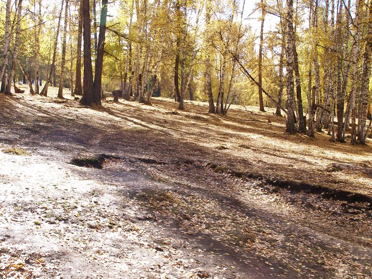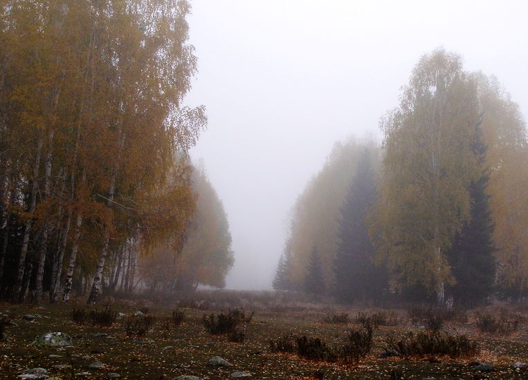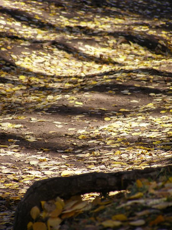 雨越来越密,大家决定回客栈呆坐,我不愿,老痴留下陪我继续游走。风雨中的桦树明显单薄、稀疏了很多,风起,黄叶飘飘的浪漫萧条颇让人惆怅,地上又是新一轮的落叶了,它已全然没有了昨日的金黄灿烂,只变得湿滑憔悴,踩在上面,想起我曾经的一篇“今日黄花明作泥”。 想当日,梢头独占一枝春,嫩绿嫣红何等媚人啊!从前日的新生到昨天的追捧再到今日的唯我问津,便成就了它们一生,该有怎样的心理落差呢!人生想必也就是个过程,和一些人一些事相遇的过程吧!
