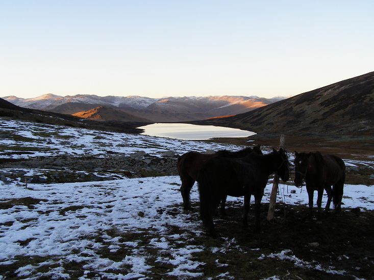 本计划早7时半早餐、8点出发的,不料主人及马夫都还未起。于是,等待中放眼看去,四周围蒙蒙胧胧,除了我们都还在沉睡中。竹筒里引出的溪水清澈通透、却冰得断指,似无数刀光箭影后般让人痛彻,可一旦忍下了就能感觉到热辣,这种触觉的极度转换可以令人刺激与亢奋。