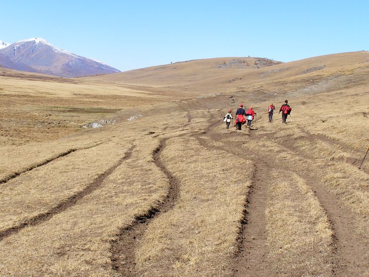 因为前日不慎走伤了腿,今天没走多远左膝盖就象针扎的疼,每挪一步都非常吃力。想着还有好几天的行程,便听了同伴的话骑上了马,我是个奇怪的人,越大越没有安全感且越发地胆小。马夫牵着缰绳,跟我一句接一句地聊着,他告诉我他今年二十六了,在他们这儿象他这般年龄的男子早就结婚生子了,但他还没有女朋友。我问他“你不着急,家人不催促么?”他说他要赚钱,他得盖好房子了才会考虑这事。他说他自已有三匹马,再过些时候天冻了,他们就要撤回阿尔泰 ,等来年暖和水草丰盛了再来。他有些害羞地问我多大了,有男朋友没?我笑着说,你小着呢。
