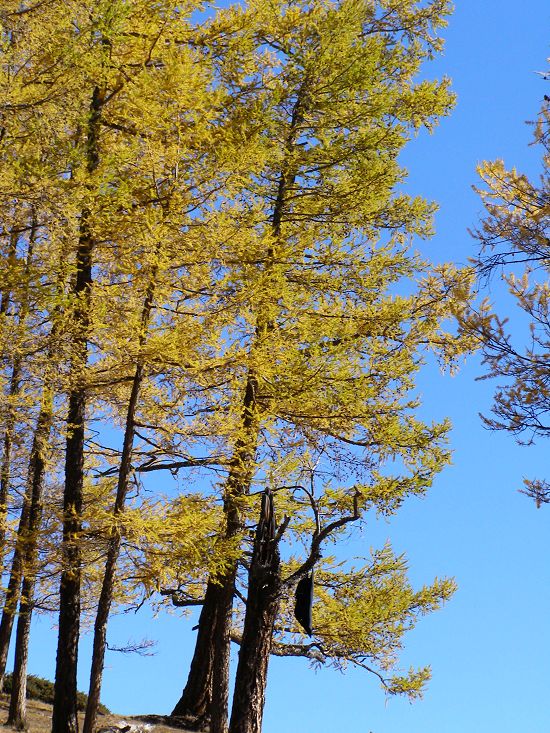 穿行在山林中,树荫蔽护,和风拂面,水流声儿鸟鸣曲儿,马道泥泞铃音响脆,要不是背上的包、手中的杖提醒着,我真会以为自已就是若干年前行走在马帮的人,每每都驮着一群人的使命出去,又带着一堆儿的希望回来,披星戴月、风餐露宿,孤独而英勇。一路沿着山环行,山上的桦树已全然没有了禾木 的灿烂,但抖落掉那满身的华丽之后它挺拔的身段仍显得非常高贵,我明白这是一种气质,一种脱胎换骨的决然气质,仅管蜕变的过程有不舍有疼痛。天空蓝得那样干净,一如我此刻的心灵,悲怜洗涤、酸楚褪尽!