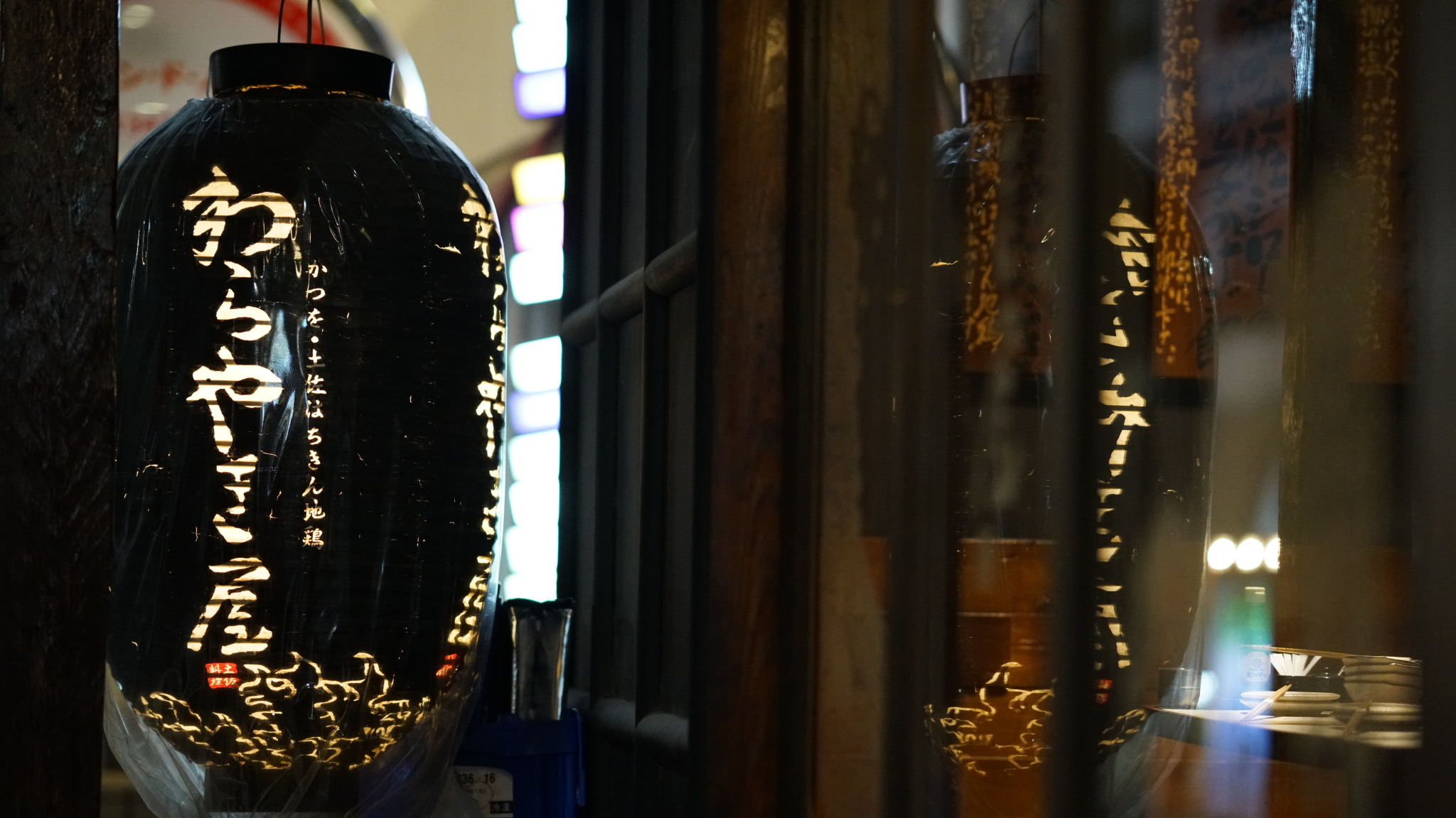 【わらやき屋 】起初被古朴的木质大灯笼和暗黑色系所吸引,后来为它们的菜品所痴迷。我们的晚饭在这里解决,