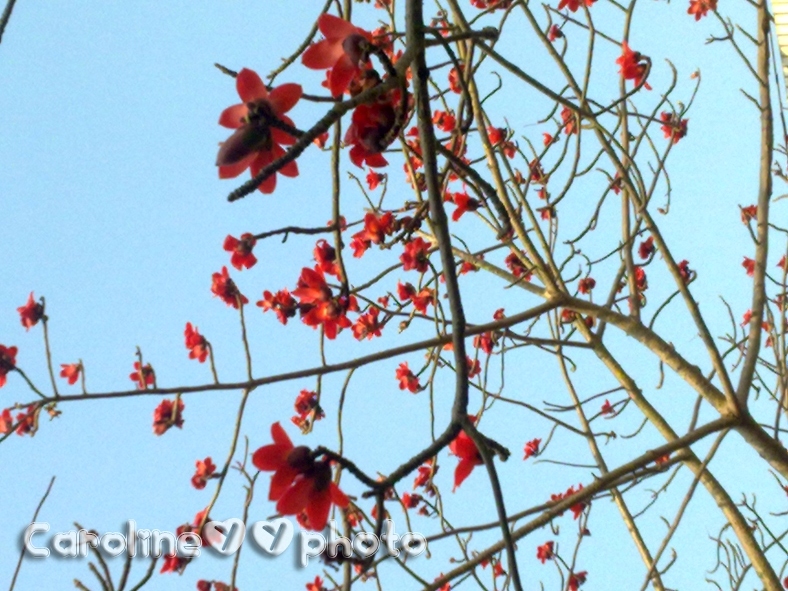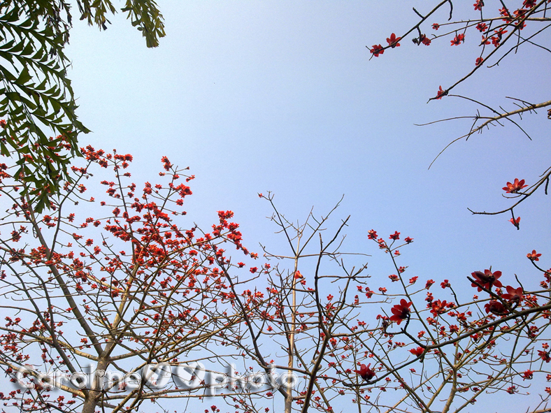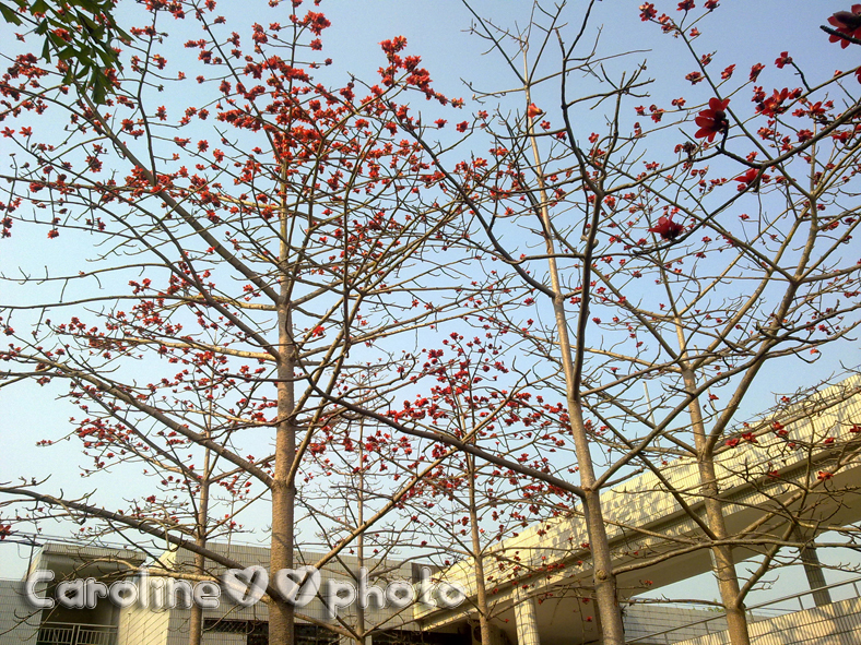 一夜之间,木棉花开,然后在不知不觉中,红色的花朵占满枝头,无论从视觉上还是心理上都给人热情向上的感觉。实在抵不住诱惑,在赶校车的时候用手机拍了几张,现在看来无限惋惜,当时竟忙得连好好照相的时候都没了。