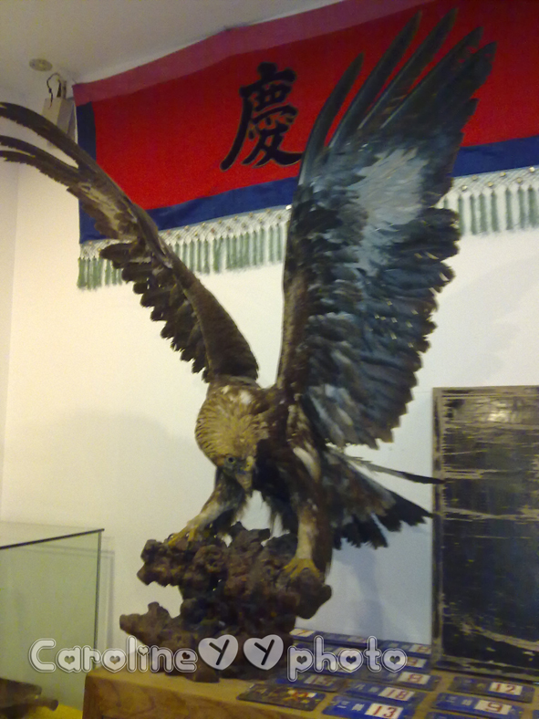 这个老鹰把我吓得叫起来了,我们研究它是真是假,然后我突然觉得它眼睛像在动似的,很丢脸的叫了一声,被唾弃了~~真的,居然是真的,羽毛啊,栩栩如生有木有?眼睛啊,是一个洞有木有?!嘴巴的弧度很逼真,我们一致认定是标本来着。