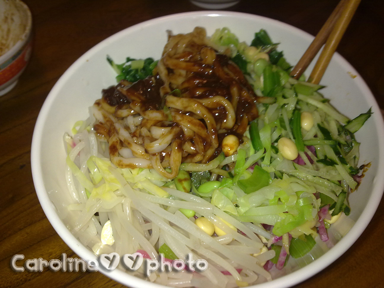 成品,这么看有点像热干面。味道嘛,真的想知道吗?首先我觉得,为嘛十几块一碗的面没有肉,我之前吃的炸酱面都是有肉滴,然后面不劲道,感觉太久了,han了(不晓得用普通话怎么说啊~~~)静姐尝了下,很是后悔,说有机会吃斌哥爸爸(还是妈妈)弄的,绝对好吃。