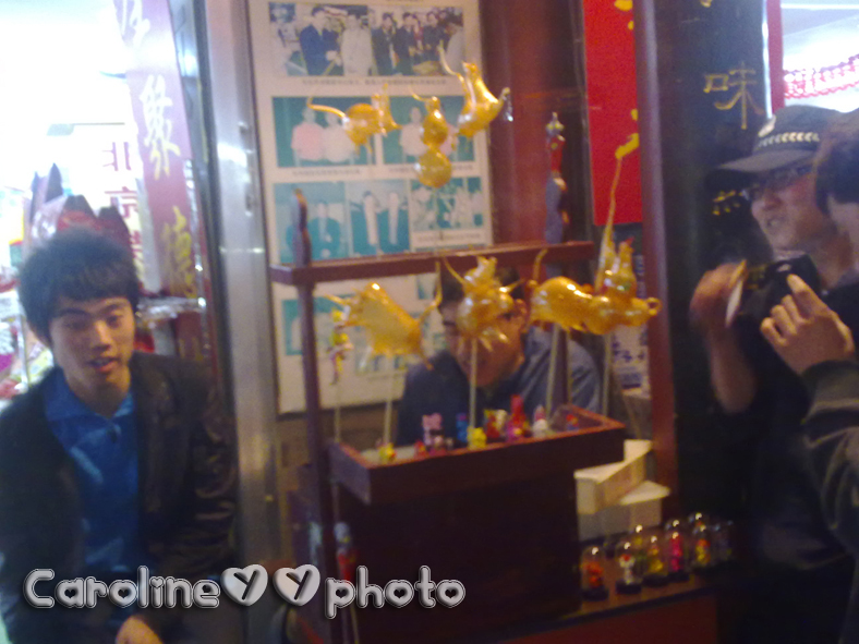 吹糖人?米粒吹了只兔子,30元,有点走形,呵呵,感觉师傅发挥忽高忽低啊,不过很热情的小哥。也算是小时候的记忆,吹糖人,捏唐人,以前放学的最爱啊。