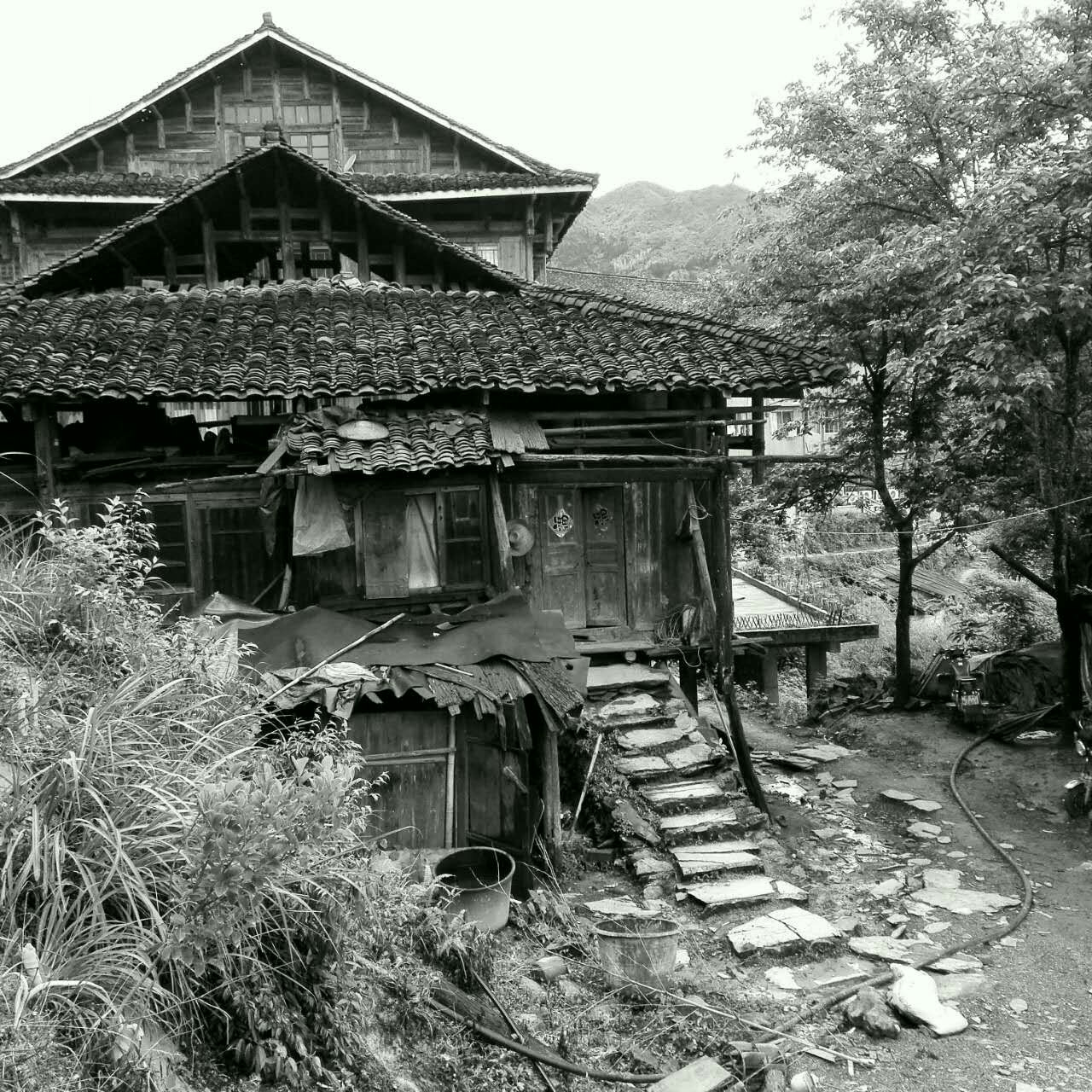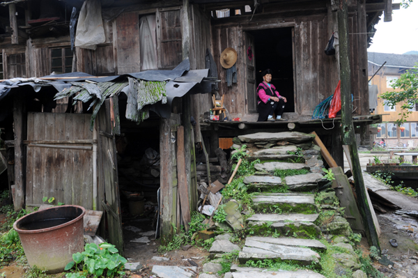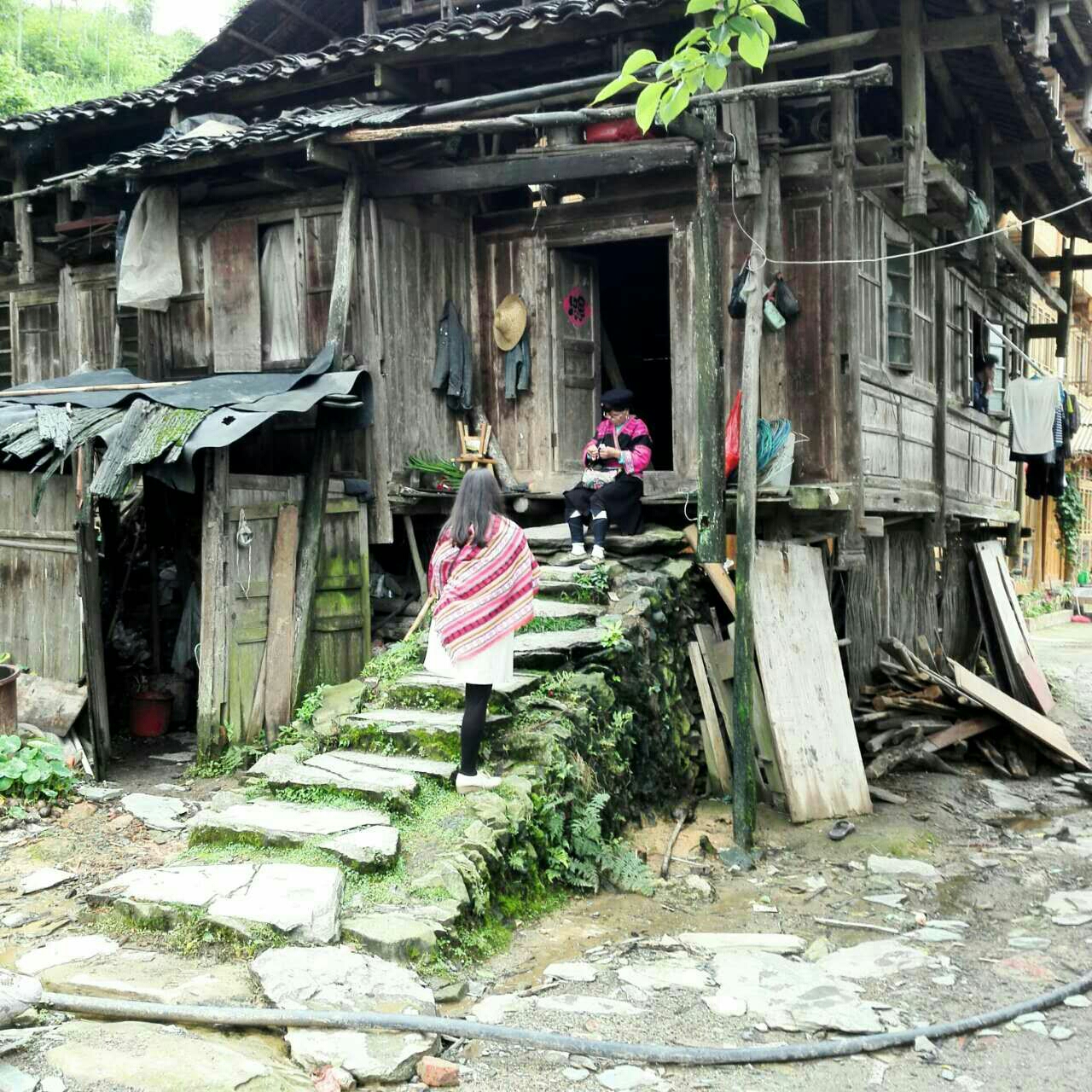 美景楼饭店旁边有一处老房子,房子的主人家也盖了新楼做农家乐,家人还住在旧房子里。老公对她家的老房子感兴趣,花了30元,请她背器材,到她家里左拍右拍。有钱赚,这瑶族的大姐挺高兴的,上镜效果很不错的。