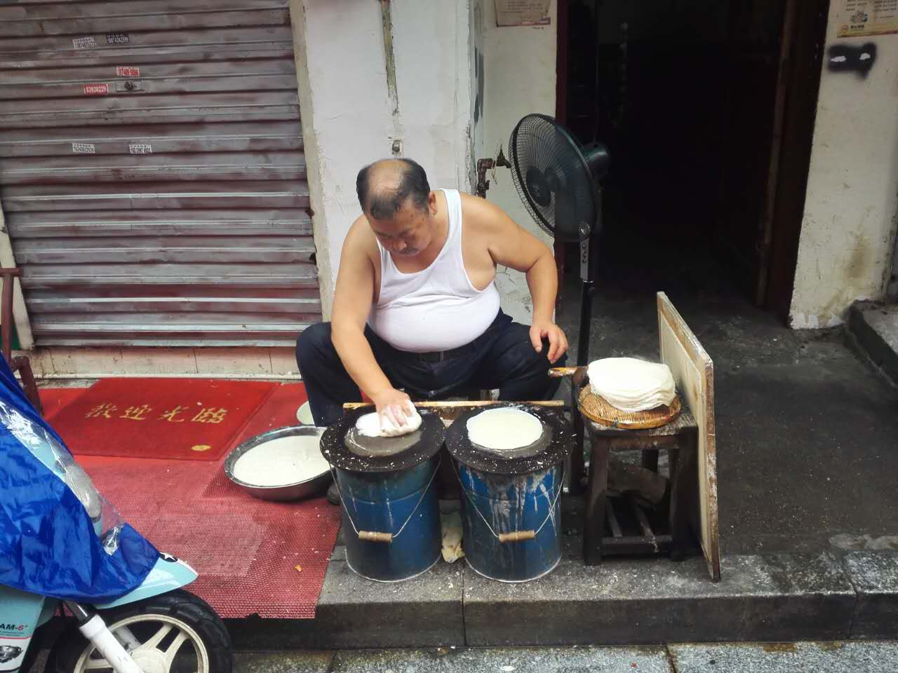 长沙的雨很奇怪,你以为雨停了,准备收起伞,伞还没有装到包里,下一场就开始了~~我在甘长顺吃米粉的时候,雨又大了,于是买了扣肉饼和冰豆浆回酒店。