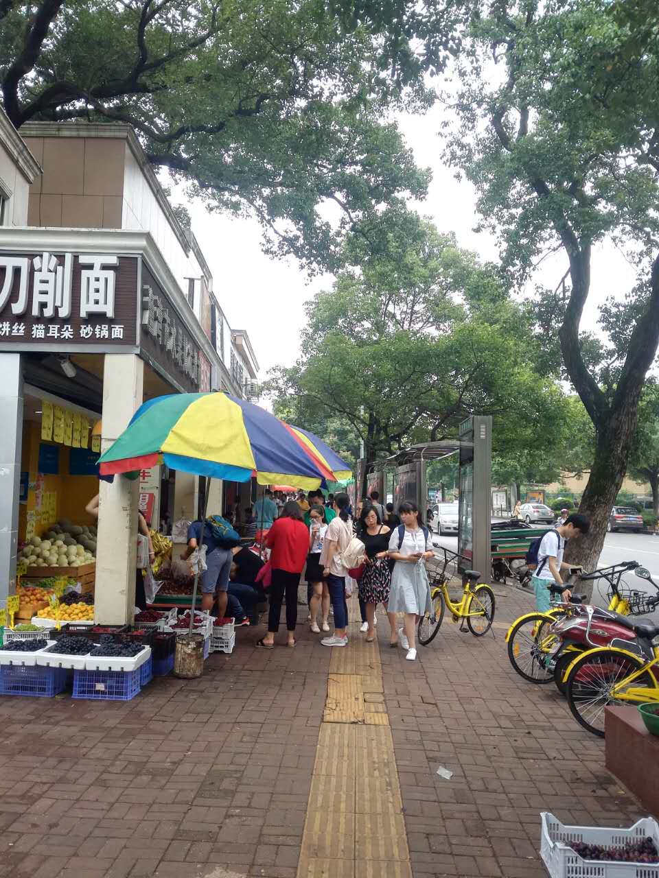 去岳麓山的路上,是湖大的学生公寓还有一些科研楼,沿线有一条长长的小街,各种小吃店,除了湖南小吃,还有广东肠粉、广西螺蛳粉、天津煎饼果子。花店、水果店、冰饮店,还有麦当当和开封菜,加上来往的大学生,有一种莫名的幸福感和兴奋感。