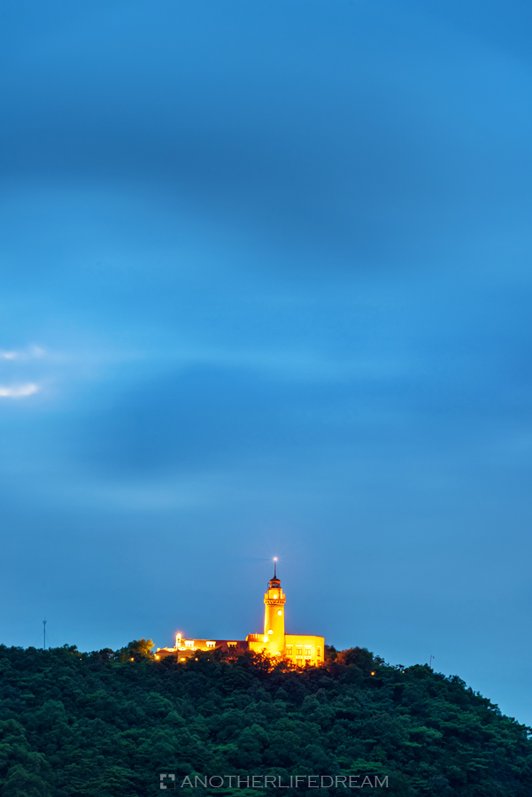 夜色渐暗,一天的阴云开始渐渐散去,天空呈现出由浅入深的蓝色,远处山顶的教堂,这时显的格外华丽和静谧。