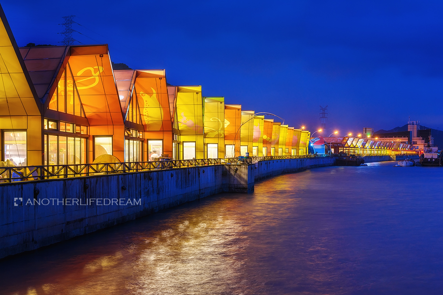 沈家门海鲜大排档,最大的特色便是这连绵不绝的黄橙三角屋。除了用餐,这里也是舟山旅游的一道独有的风景线。多年的舟山旅游,我甚至有意无意的鉴证了这里的排档长龙从自建的帐篷到统一规划后的变迁。