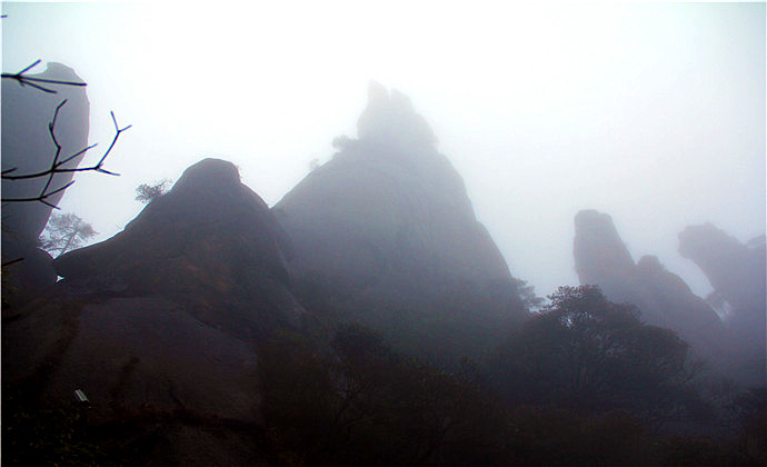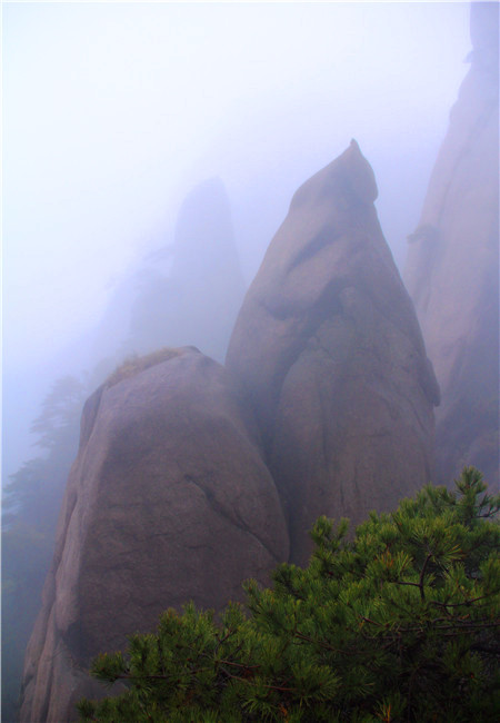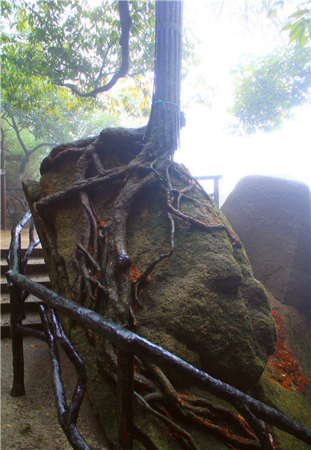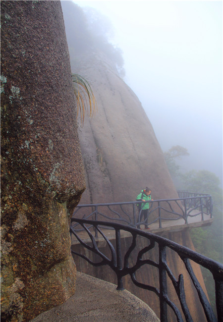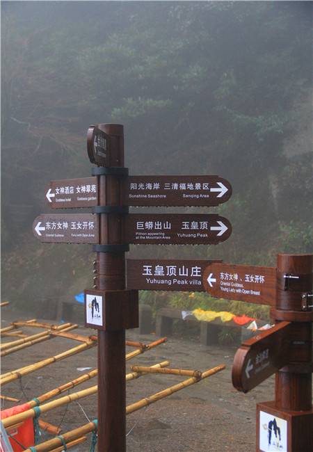 下了缆车我们是逆时针走的,先到了巨蟒出山、玉皇顶,整个 三清山 全是雾,能见度在5米以内,一片茫然