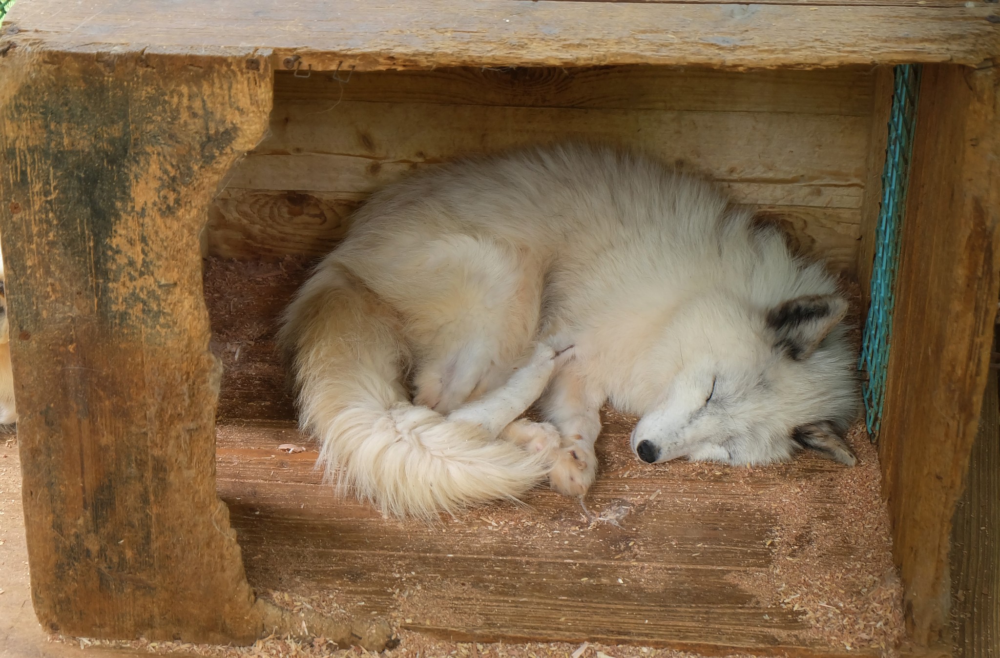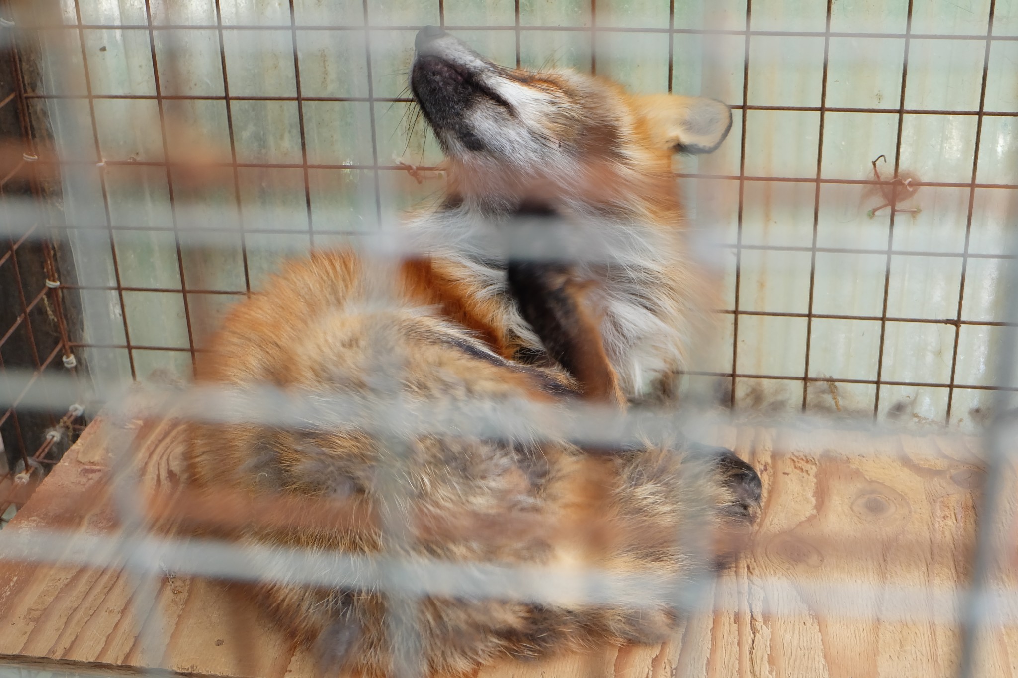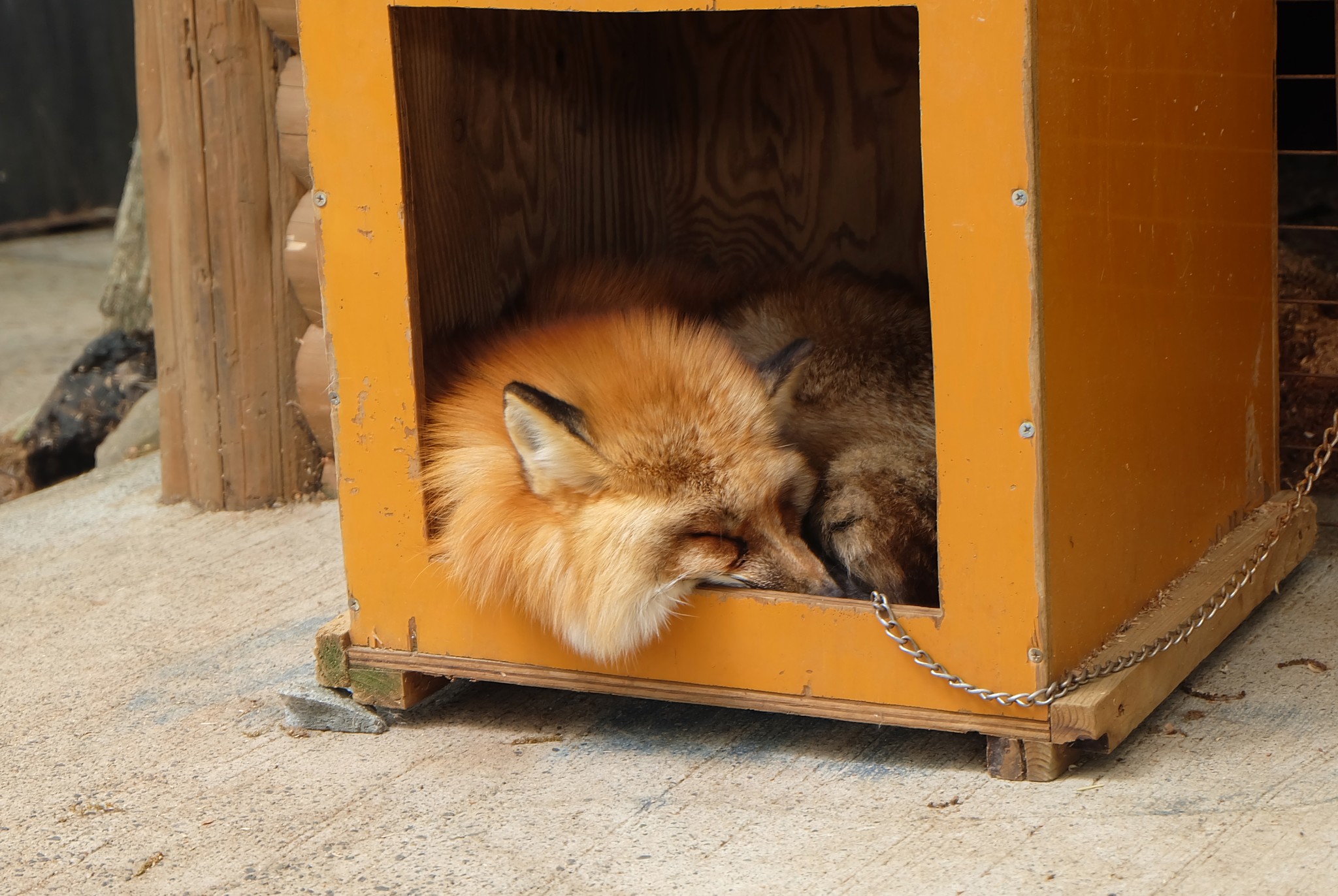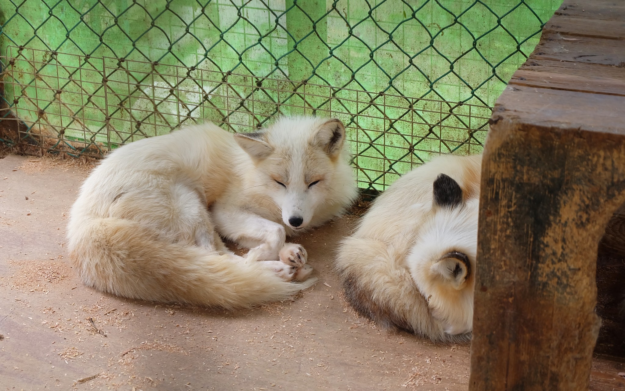 这里的狐狸通常都是关在笼子里的幼崽以及锁起来呼呼大睡的成年狐
