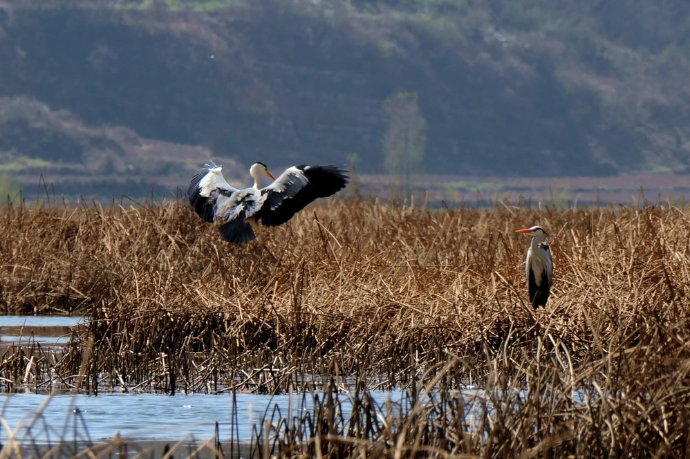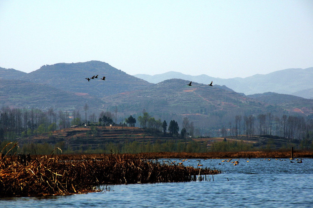 威宁 草海 素有“高原明珠”之称,又名南海 子、八仙海,是贵州 最大的天然淡水 湖,海拔2170多米,覆盖面积保持在30平方公里以上,以芦苇、蒲草等水生植物繁茂而得名。因湖水较浅,水质良好,透明度大,且湖底又多为淤泥底质,因而水生高等植物种类繁多,各类水生植物几乎布满湖水生高等植物,计有20科、26属、37种水下生满了各色各样的绿色草类,密不见底,由于得天独厚的自然条件,草海 成为百鸟水禽栖集的乐园,种类多达150种。其中属国家一类保护的珍禽有黑颈鹤、白头鹤、黑鹳、白鹳、白尾海雕等;二类保护的有白琵鹭、鸢、白尾鹞、游隼、红隼、灰鹤、短耳号等十余种。