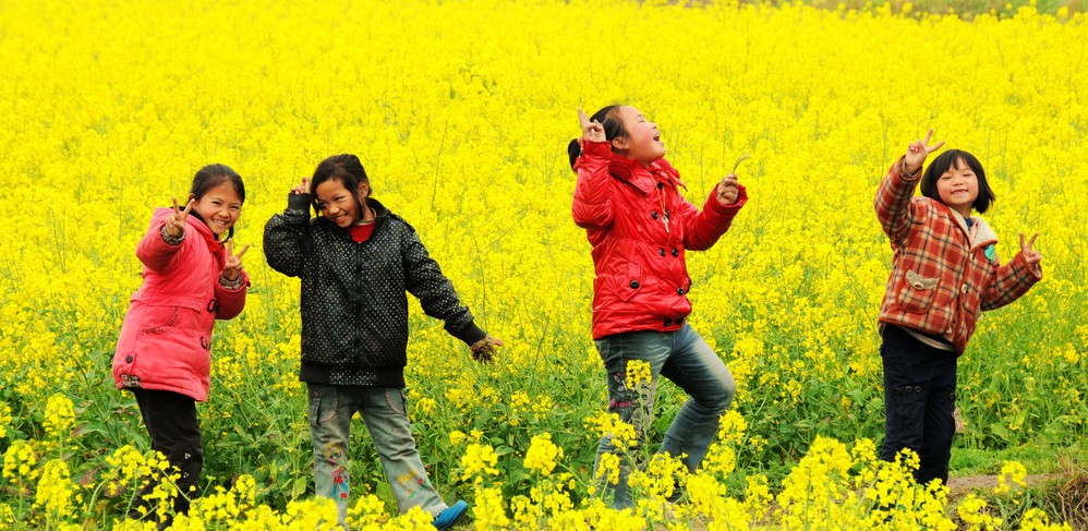 看到这些欢腾着的小姑娘,耳边回响起儿时的歌声:我们的田野,美丽的田野。。。。