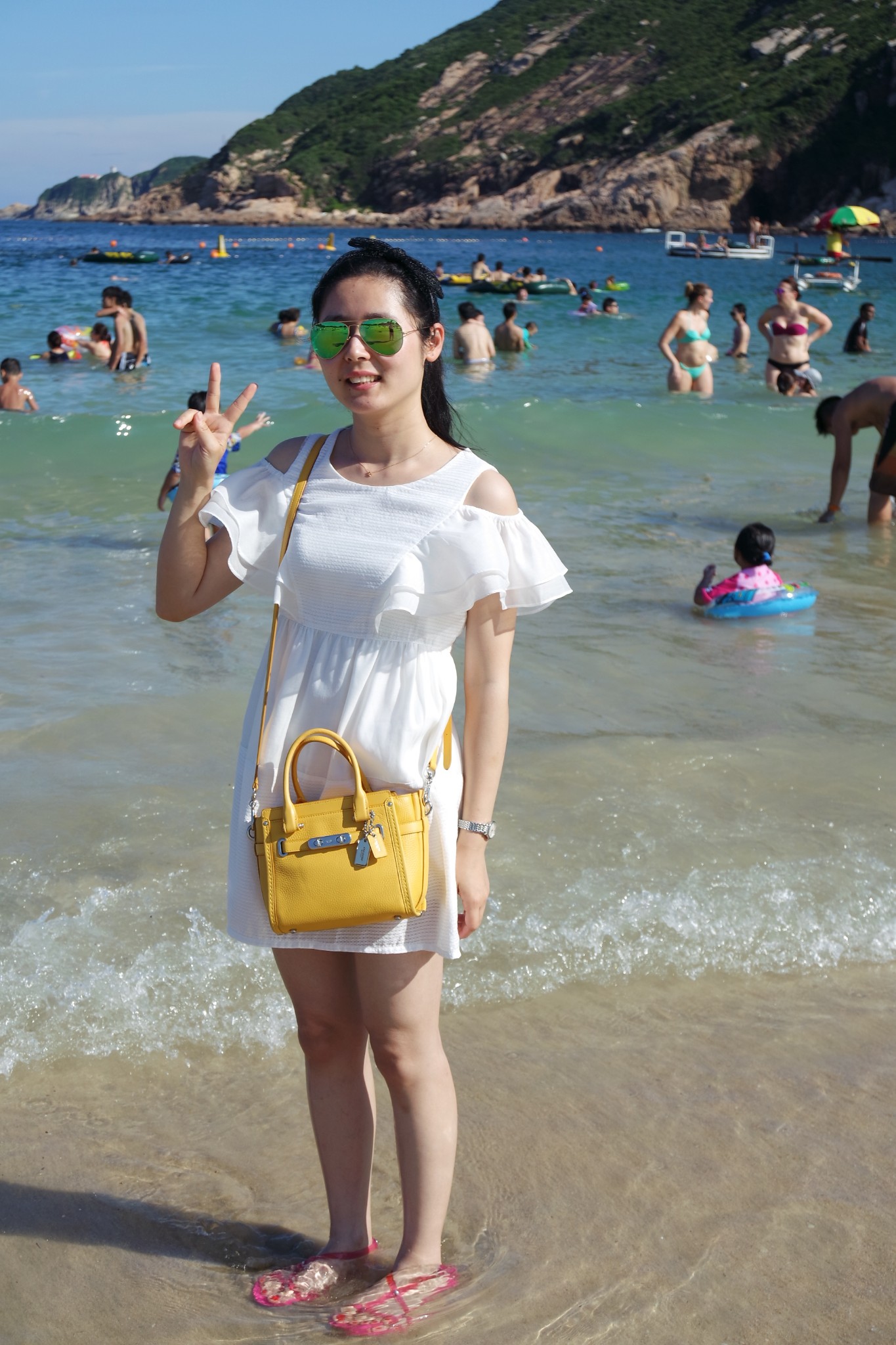 时间充足的话,可以带上泳衣,租个伞,在这里玩上一会,出口的地方有淋浴,可供免费冲洗,就是露天敞开的。由于晚上我们得去太平山顶,就踏了会浪,然后去找了找人家游记里面小清新的房子,可惜没怎么找到