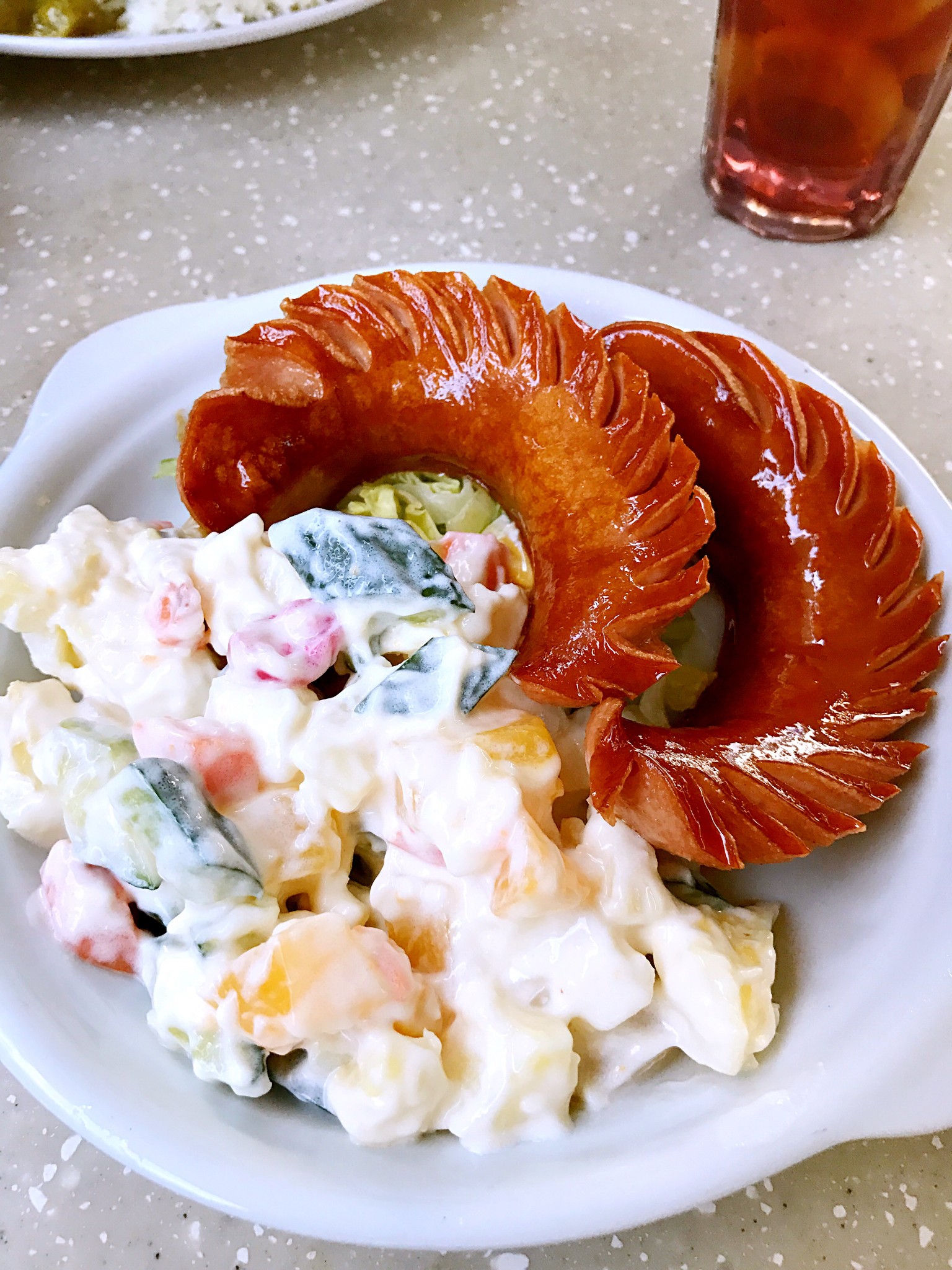 点了一份下午茶,包括一杯饮料,一个色拉,香肠。还点了一份牛腩饭,一杯冻柠茶。第一口冻柠茶,就感觉好好喝,然后迷上了,在上海是一直喝奶茶,不和柠檬茶的。牛腩很入味,也很嫩,应该炖了很久的,量也很大,都是牛腩,土豆很少。除了色拉,其他都不错,怪不得人家色拉都吃剩了。