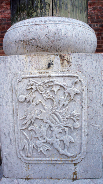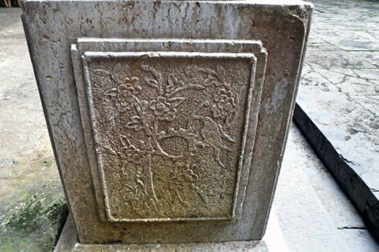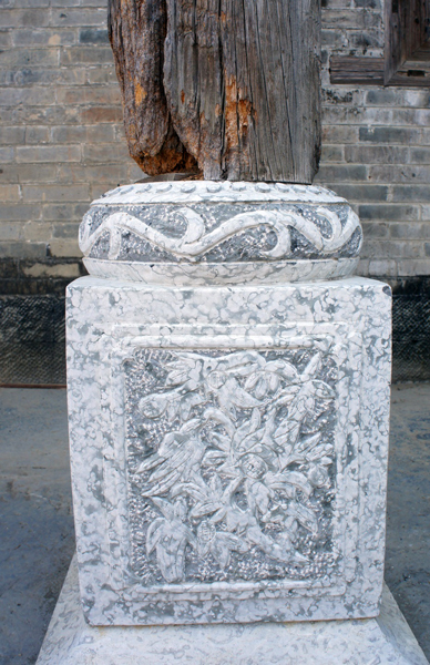 建筑很讲究细节,连各厅堂的柱石上都是不同的花式图案。