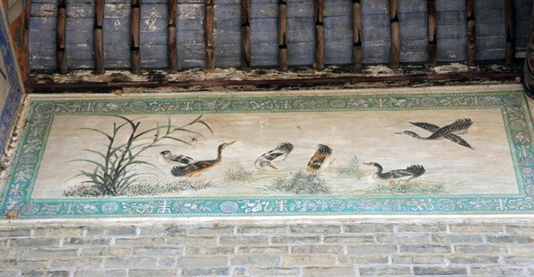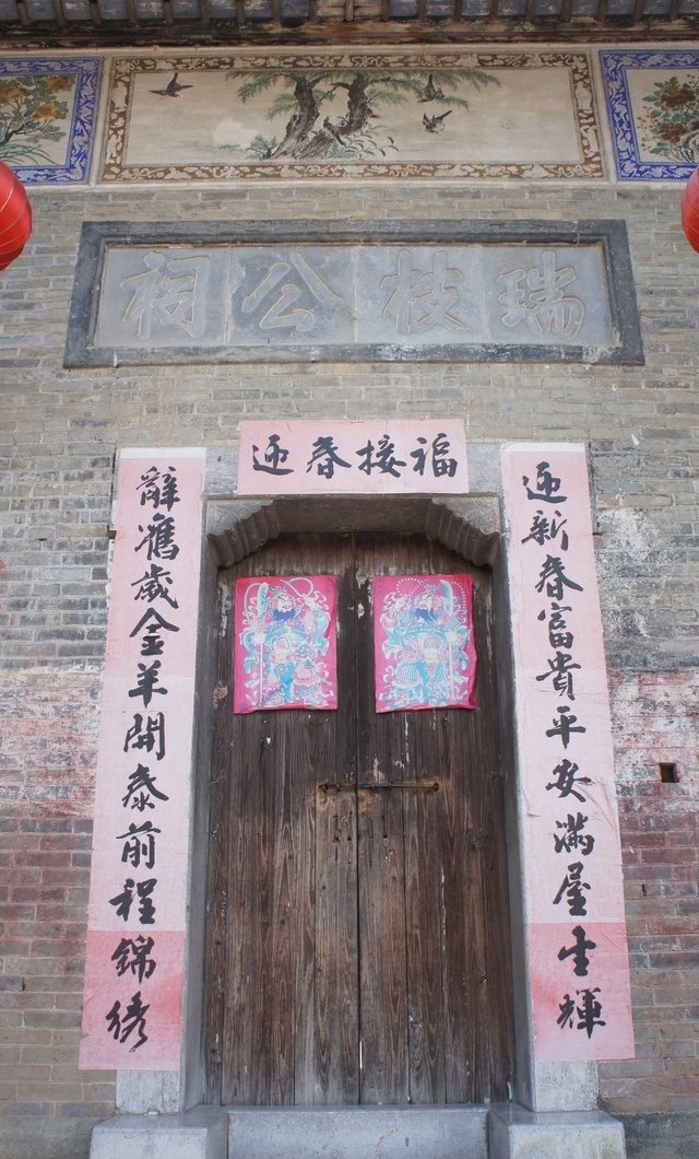 瑞枝公祠的屋檐下和墙壁上有几幅水彩壁画,笔法精湛,栩栩如生。
