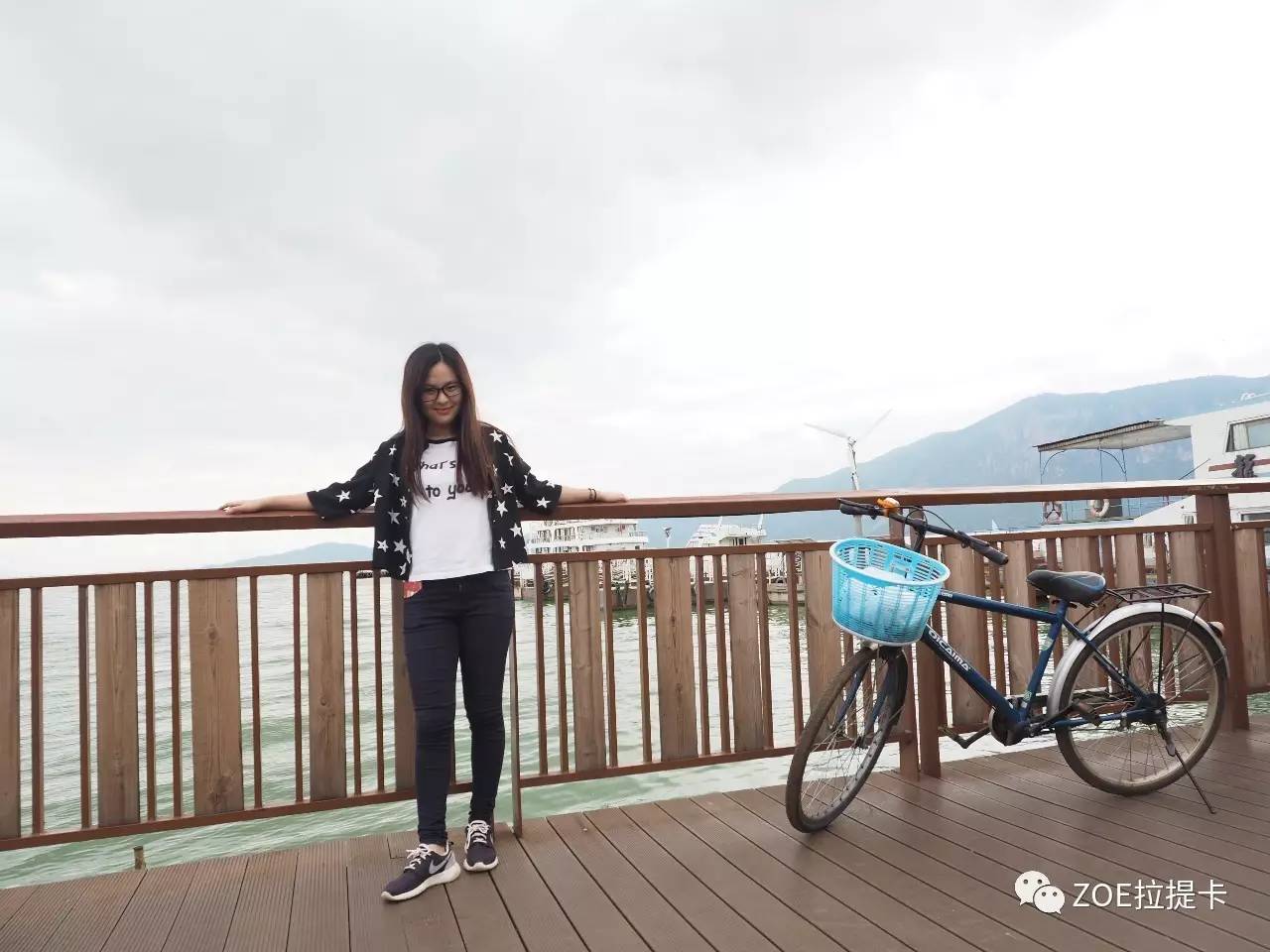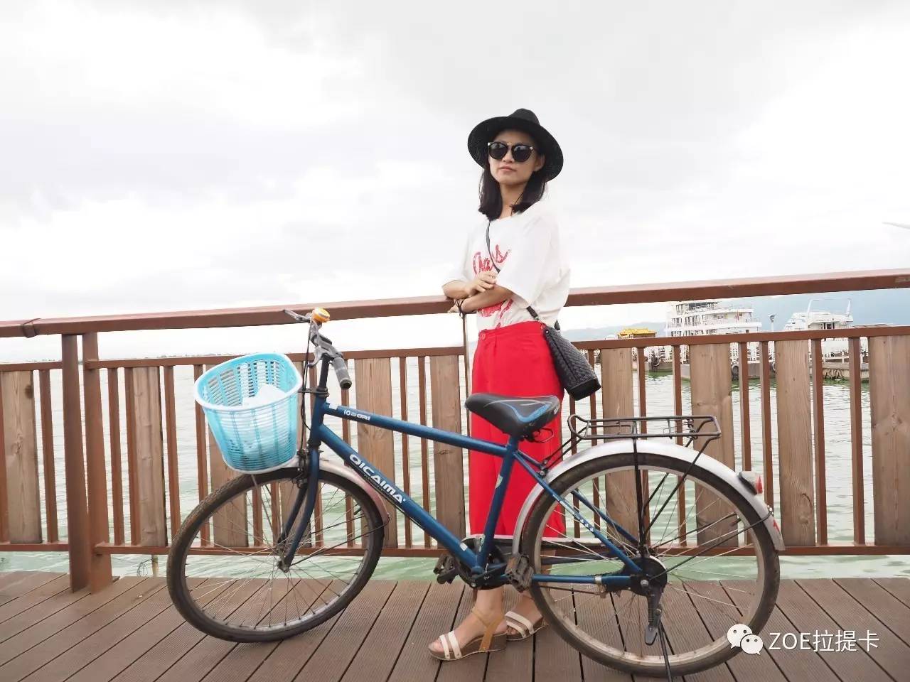 初到滇池,天空有点阴冷,我们看到旁边有租脚踏车的,便毅然租了三辆,打算环绕滇池一圈。可以想象,在滇池边上骑着脚踏车,看湖光山色,是多么惬意。但是,永远不要相信一群女孩子的计划,任何的计划都抵不过眼前美景的诱惑。我们几乎是骑一小段就停一小段,与其说是环湖骑行,我们更像是来寻找最佳拍照地点的,任何一个上镜的地方,都能逗留许久,然后不知不觉就到了傍晚。