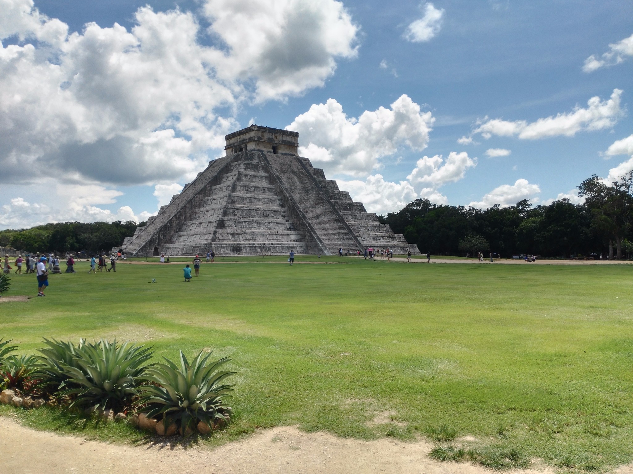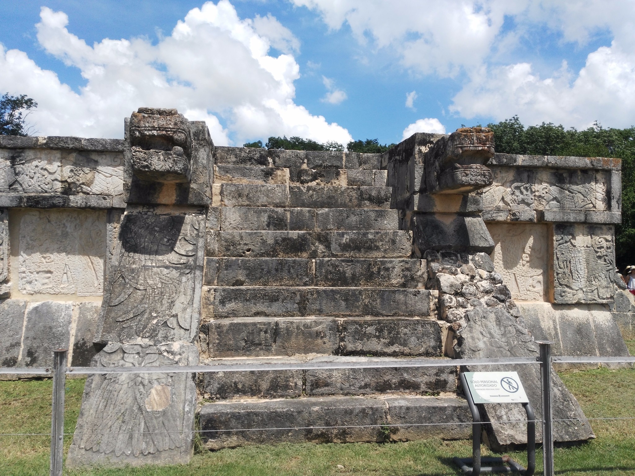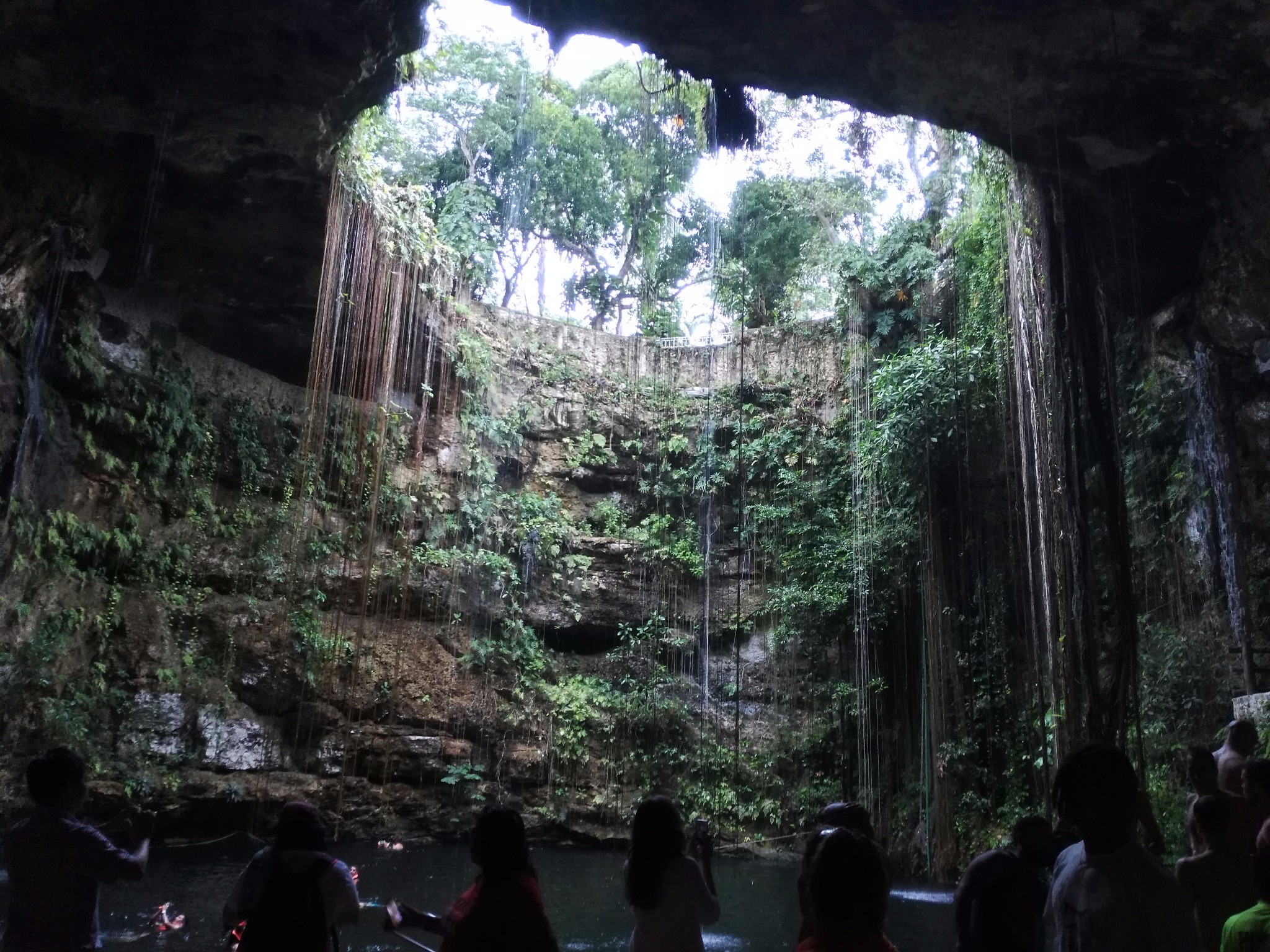 五、 第九天,游览世界新七大奇观之一的【奇琴伊察遗址】,该遗址汇集了玛雅文明的精髓,主要参观的建筑物有:库库尔坎金字塔、勇士神庙、球场、骷髅平台、天文台、IKKIL Cenote 天坑等建筑物。 【Ikkik Cenote】,世界三十六个秘境之一。顺着Ikkil Cenote的洞口,向下俯瞰,那是个离地面85尺深、60尺宽、水深40尺的地下天然井。这个巨大深邃的地下天然水井就被称为天坑(Cenote)或圣井。沿着石阶往下走,到了中段区域,就能看到洞口垂下千丝万缕的藤条,这时也已经能看到池水泛出的宝蓝色的颜色和光泽。接着走,便可到到井底。环顾四周,好多条涓涓细流顺着从岩壁上流往水池里。事先准备好游泳的人,便可以在此处跳入水池,与小鱼为伍,享受无比的清凉。 之后,前往坎昆。晚餐后,入住酒店休息。