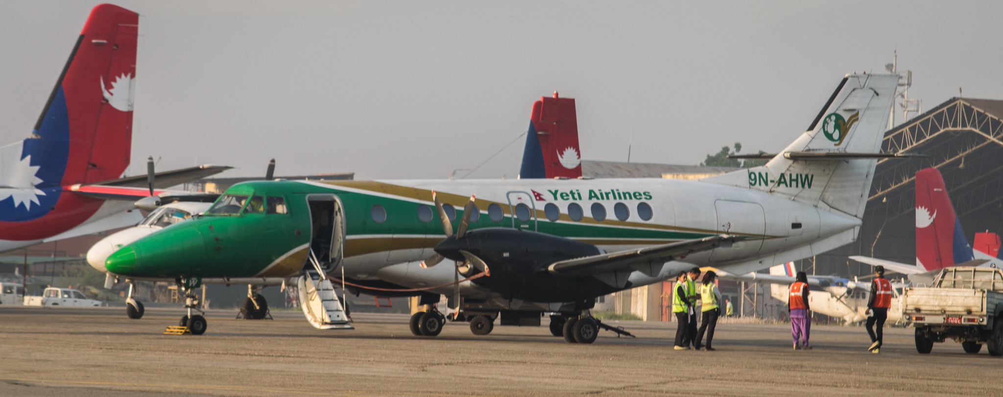 加德满都机场等待起飞的小飞机(Tara和Yeti是同一家,Tara是Yeti的子公司)↓