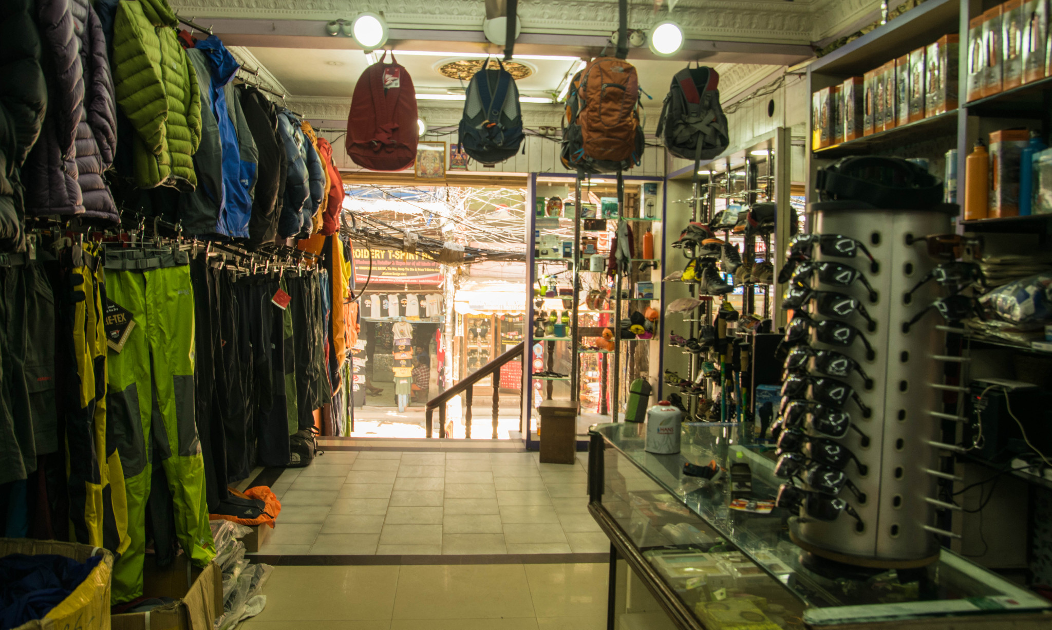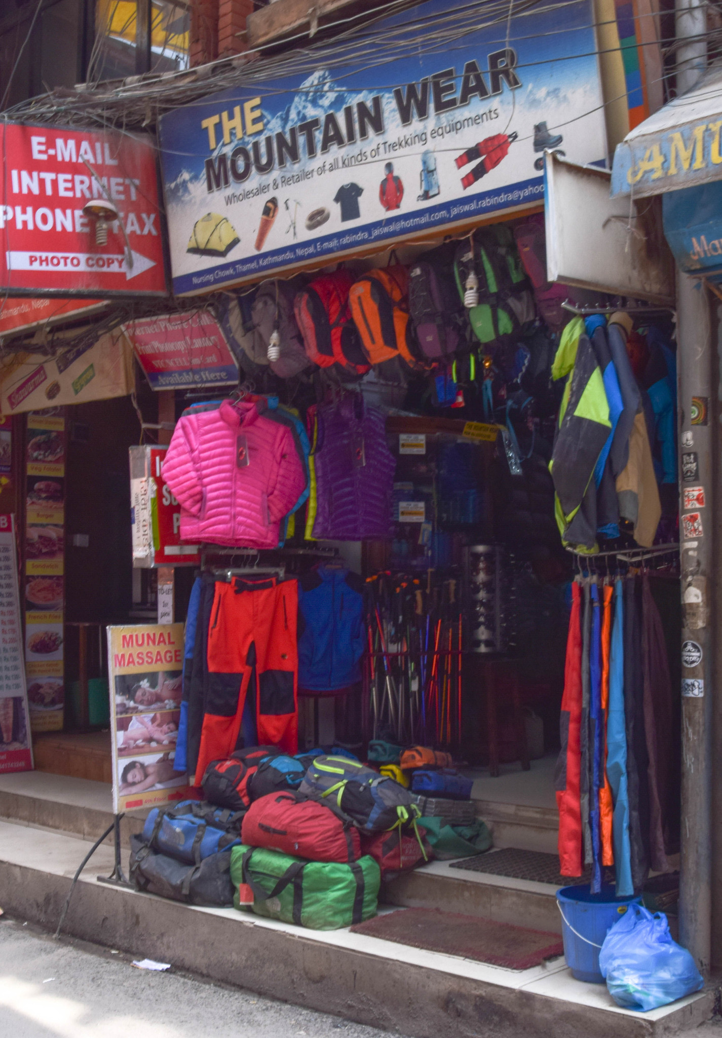 泰米尔满大街都是类似下图的户外装备店,徒步前即使没有任何准备,大部分装备在此都能廉价买到,只是质量不敢保证 ↓