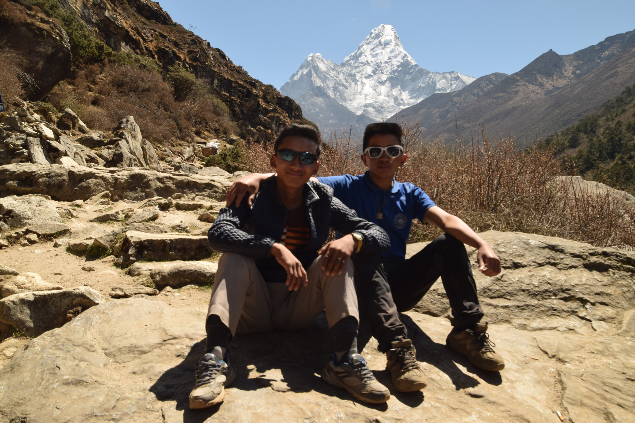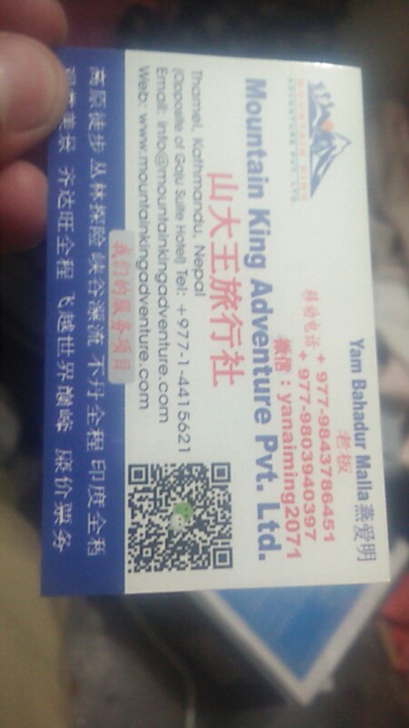 通过旅行社找背夫固然方便,如果要自己找的话会麻烦许多,当然价格也会便宜。我们的背夫实际上只能拿到手12美元/天,旅行社收走了一半多。在这里推荐一下我的背夫和他的同事,他们两一路上都跟着我们,非常负责。大家可以不通过旅行社,直接微信联系他们(我临走前教了他们用微信),这样会便宜很多,他们拿到手的钱也多。微信号 furbanepalsherpa 和 pemba989。