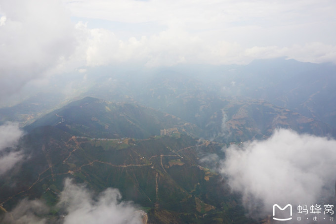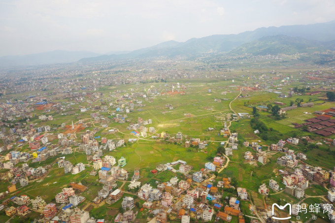 下午15时,飞机慢慢下降,由于云层太厚雪山未能露面,这对于未能选到右侧位置遗憾不已的我们算是安慰,haha~~ 窗外群山矗立,小路蜿蜒,山顶有房子和炊烟……再降落一点,彩色的房子大片大片映入眼帘,无序却明亮。对于初入尼国的我们,这些未曾见过的画面足够让我们雀跃。
