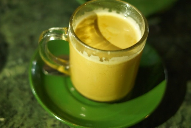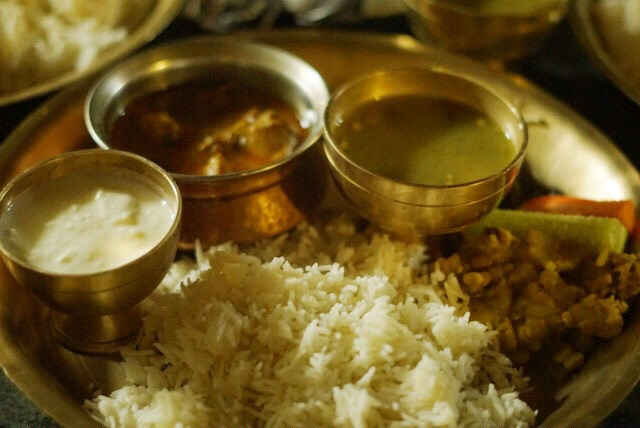 初入尼国,当然是要体验当地文化啦,邀请旅游小哥和我们共进晚餐,他带我们去了一家隐于市的本地餐厅,点了咖喱鸡套餐(米饭、鸡肉、汤、蔬菜、小菜、酸奶)、momo(类似饺子),擦干净手准备入乡随俗了呢,却见旁边的本地人在用勺子吃,哈哈,迷之尴尬。 吃完饭点了马萨拉tea,类似奶茶的口感,很好喝。喝着茶,聊着天,多数时间我们更爱听着,听小哥将这座万佛之国及他的故事娓娓述说~