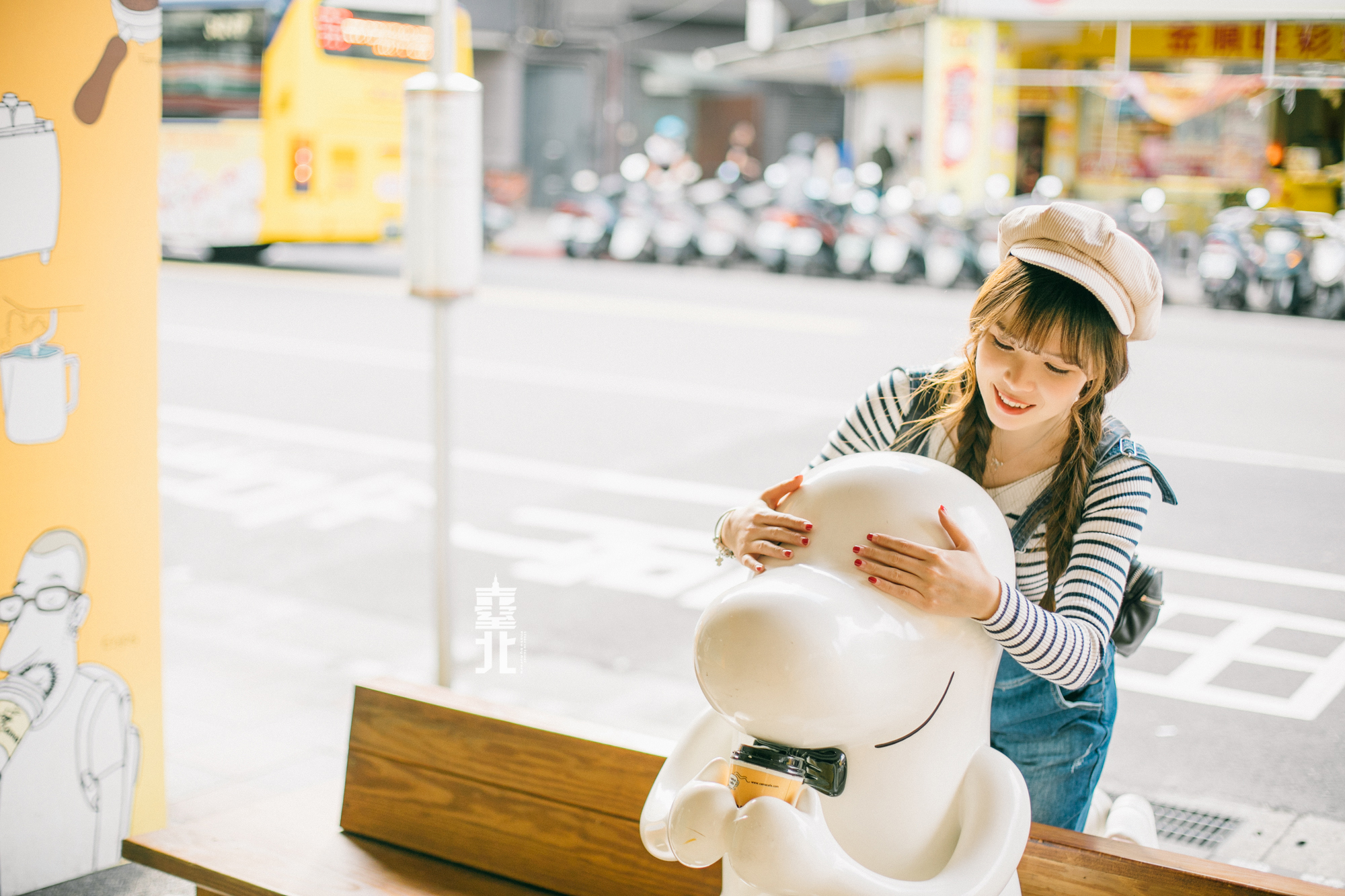 作为业余非摄影爱好者,我也知道斑马线是不错的小清新拍摄题材。看斑马线的条纹和领导这一身装扮多配!台湾本来就是自带小清新色调的地方,各家门口,各店铺,都是很适合摆拍的地方,如果想活泼点,镜头随着身体倾斜就可以。另外,领导说了,拍人必须要有前景,才有自然梦幻的感觉,所以一些花花草草通常都是我镜头躲藏的地方,每次“躲”起来拍领导时都觉得自己是个猥琐的偷拍大叔。