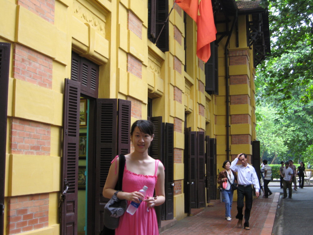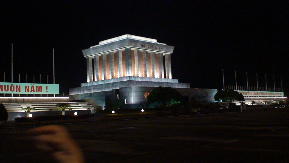 去到河内已经8点钟了。巴亭广场,胡志明墓(/poi/12782.html)。据说是模仿了林肯纪念堂,或者是毛泽东纪念堂建造的。广场上的大喇叭播放着越南语的歌曲,让人感觉好像回到了70年代的中国。