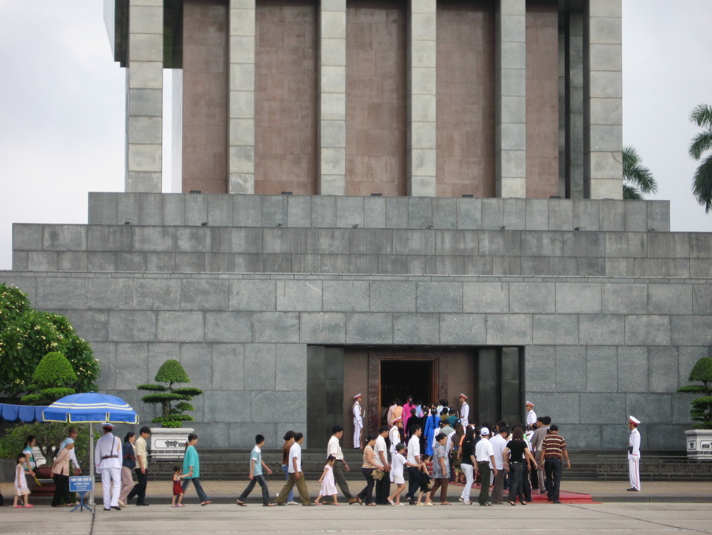 第二天一早,我们出发去了胡志明墓(/poi/12782.html)。没有进去,但是看到了许许多多的越南民众排着整齐的队伍进入灵堂。