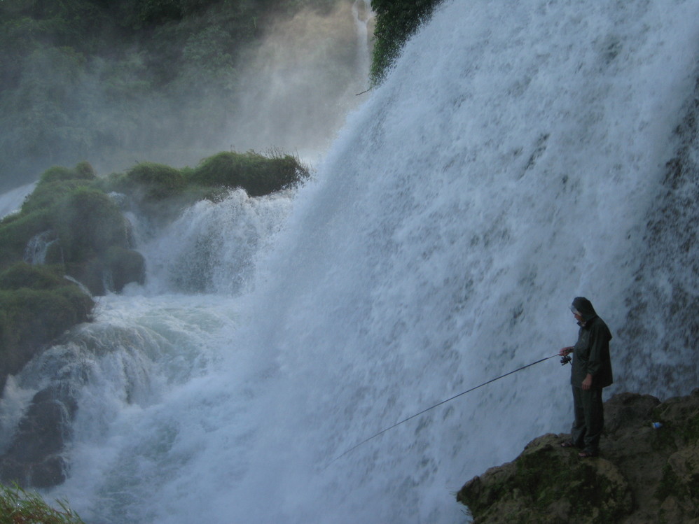 瀑布中的垂钓。