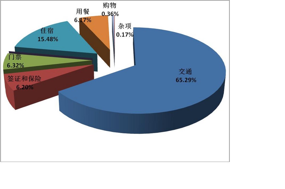 这次行程我们在印度 境内到了14个城市,共乘了3次飞机,5次火车和7次长途汽车,俩人共花费了近17000元,各项支出见下面的饼图: