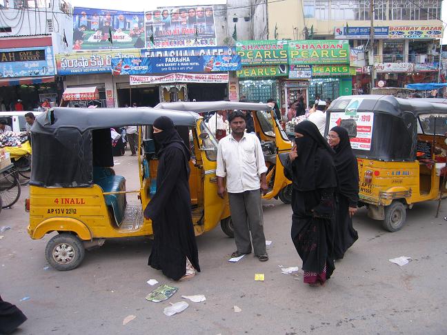 海德拉巴德是一座风格迴异的伊斯兰教城市,街上女的都用黑黑的纱将自己从头到脚包裹起来。市区拥挤而喧闹,简直让人有点受不了。我们游览了贾尔塔和麦加 清真寺。