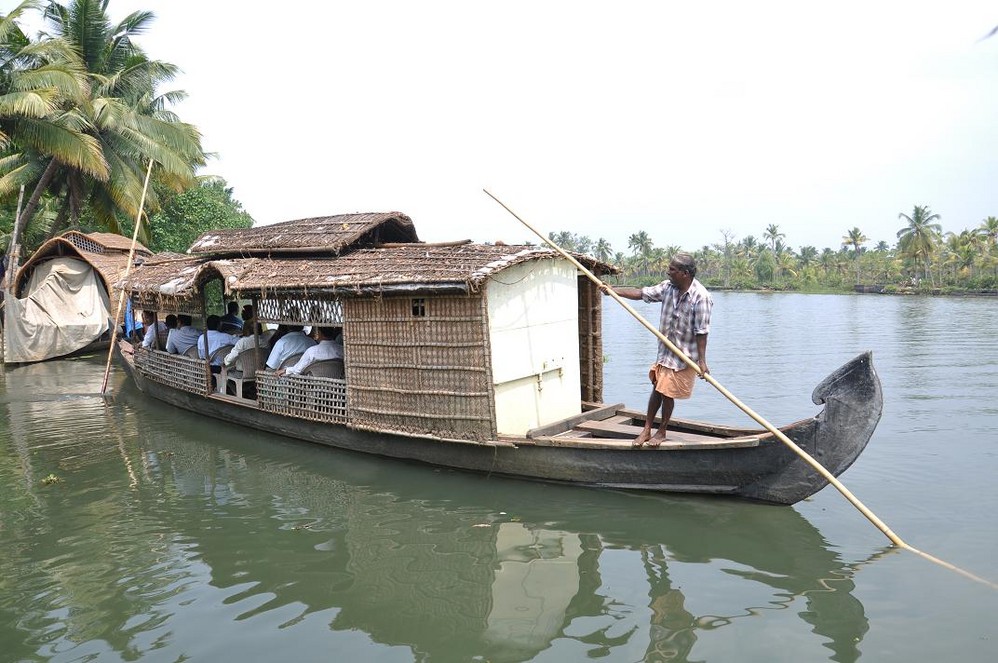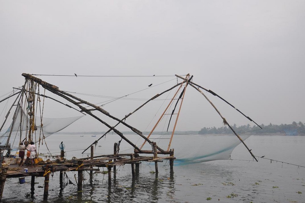 科钦 市由四个地区组成,在阿拉伯海的半岛上。地区之间乘船快捷又方便。我们坐船前往科钦 堡,每人2.5卢比,价格便宜得让人惊讶。在港口看到从中国 传入的渔网捕鱼的场面,难以忘怀,还能买到捕来的鱼到餐厅当场加工。