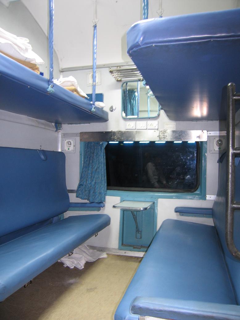 5:25乘火车从新德里 出发,坐的是三等空调车。印度 火车站不检票,火车管理相当规范,与欧洲 国家一样,站台上显示出相应车厢停靠的位置,只要在票上所示的车厢位置等候火车到来即可。如果是始发站,每个车厢门口还贴着本车厢旅客的名字,可以在名单中找到自己的名字。尽管没有列车员站在车厢门口也绝对不会坐错车。开车后有列车员来验票,车票实名制,所以除了车票外还要看护照。一列火车带有不同等级的车厢,价格相差很多倍,最差的等级便宜得就像不要钱,当然条件很差,这样穷人也能坐火车。