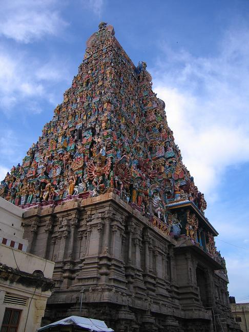 马杜赖 是印度 教七大圣城之一。我们参观了米纳克希湿婆神庙,神庙的印度 塔门高耸入天,上面雕刻着色彩绚丽的3000多神象,这是南印度 达罗毗荼风格建筑最巅峰的代表作,让人望而兴叹。感受到印度 宗教的神秘氛围。