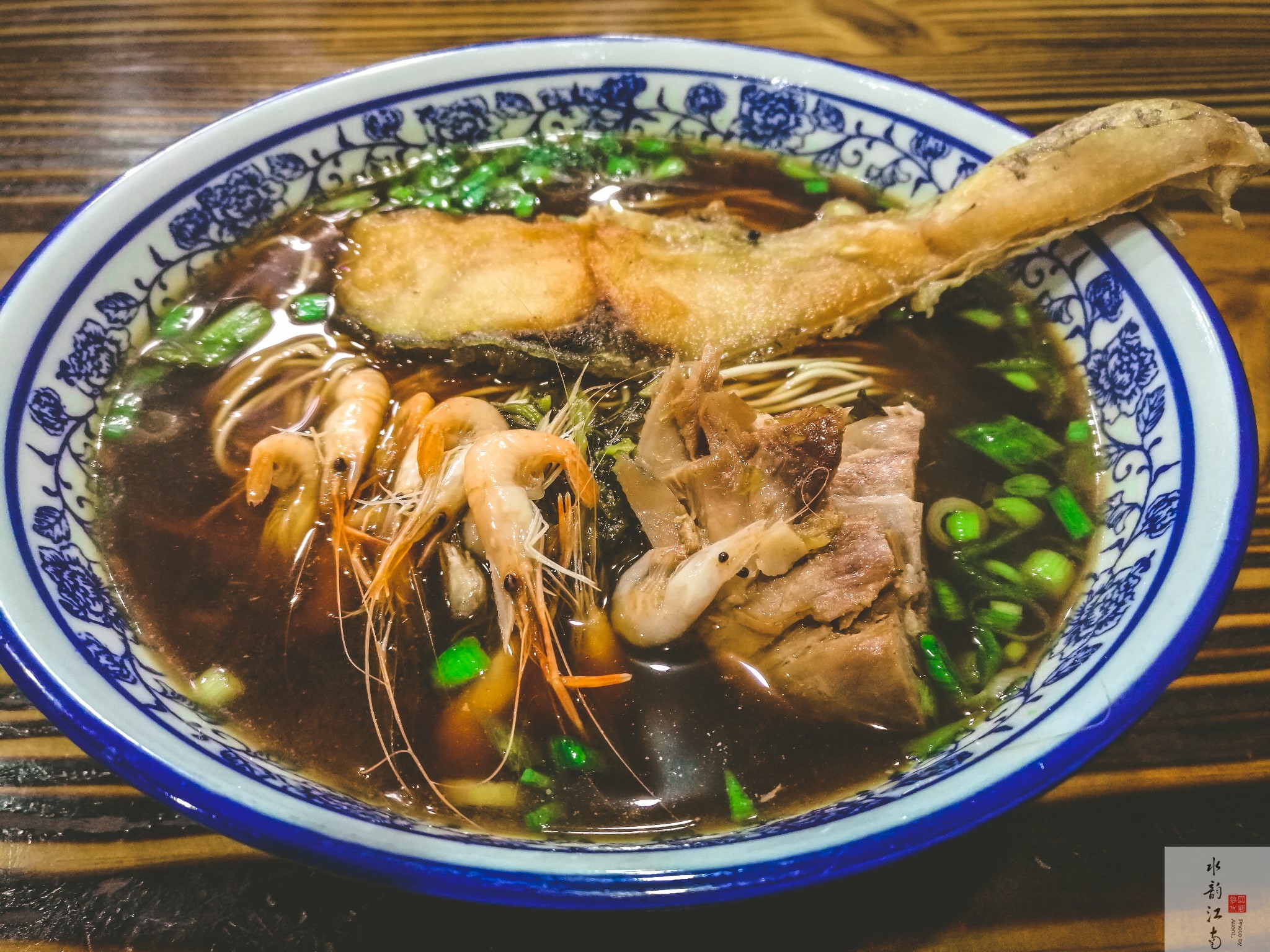 一碗集合了鸭肉、河虾、鱼肉的奥灶面,