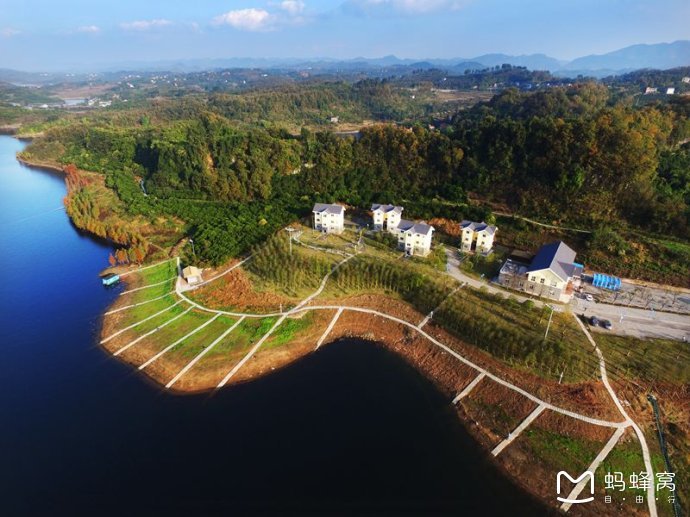 借用网络图片,这是长寿湖夜钓场的俯瞰图。右边建筑是餐饮,后面的四栋独立建筑是住宿客房。每栋三层,每栋12个房间。